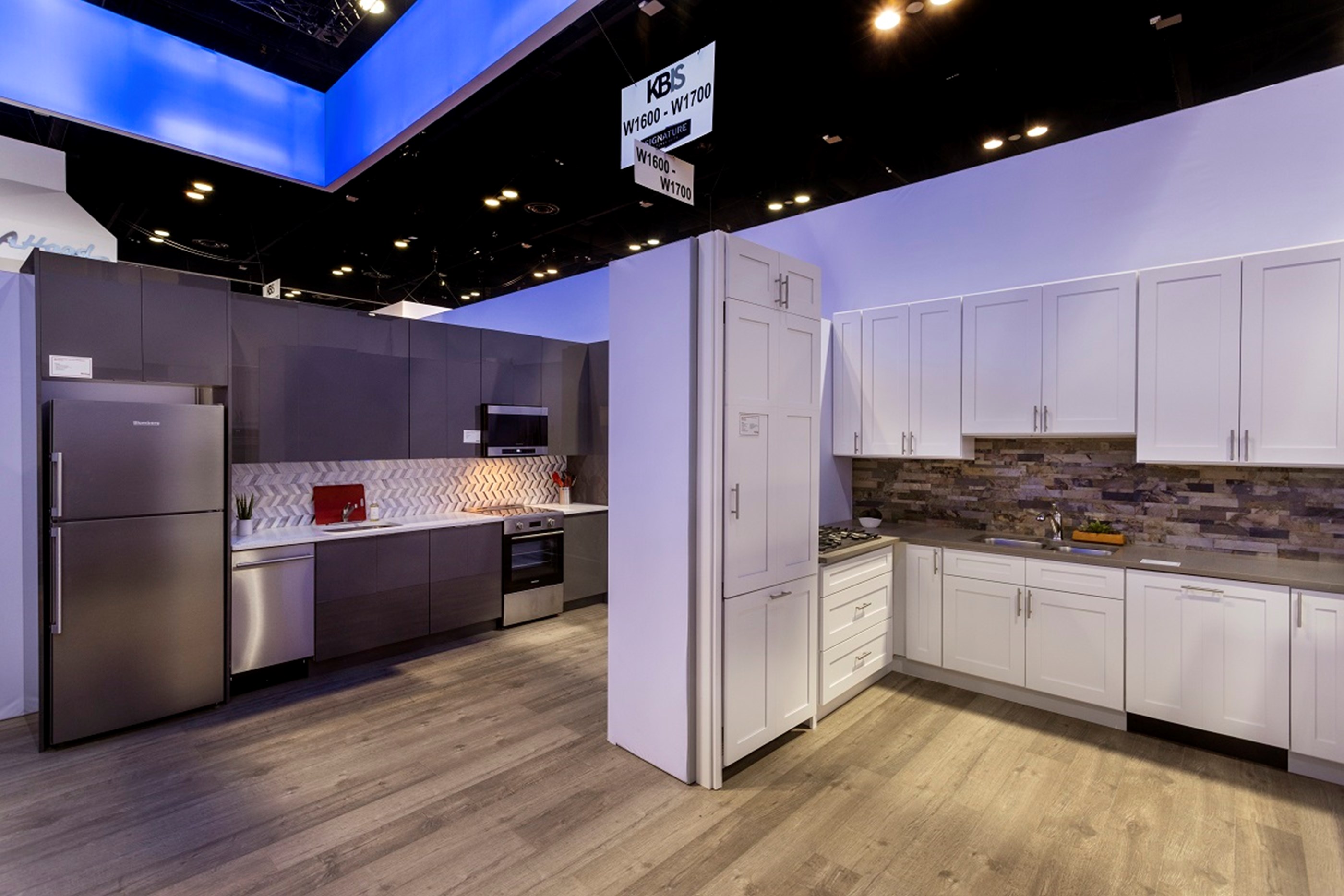 The teams collaborated on designing 7 unique custom kitchen vignettes, allowing attendees to visualize the product lines in actual settings. Ion's team used a system build approach to maximize budgets, while creatively bringing high-end custom finishes such as solid surfaces, custom cabinetry, back-splashes and integrated appliance drops.