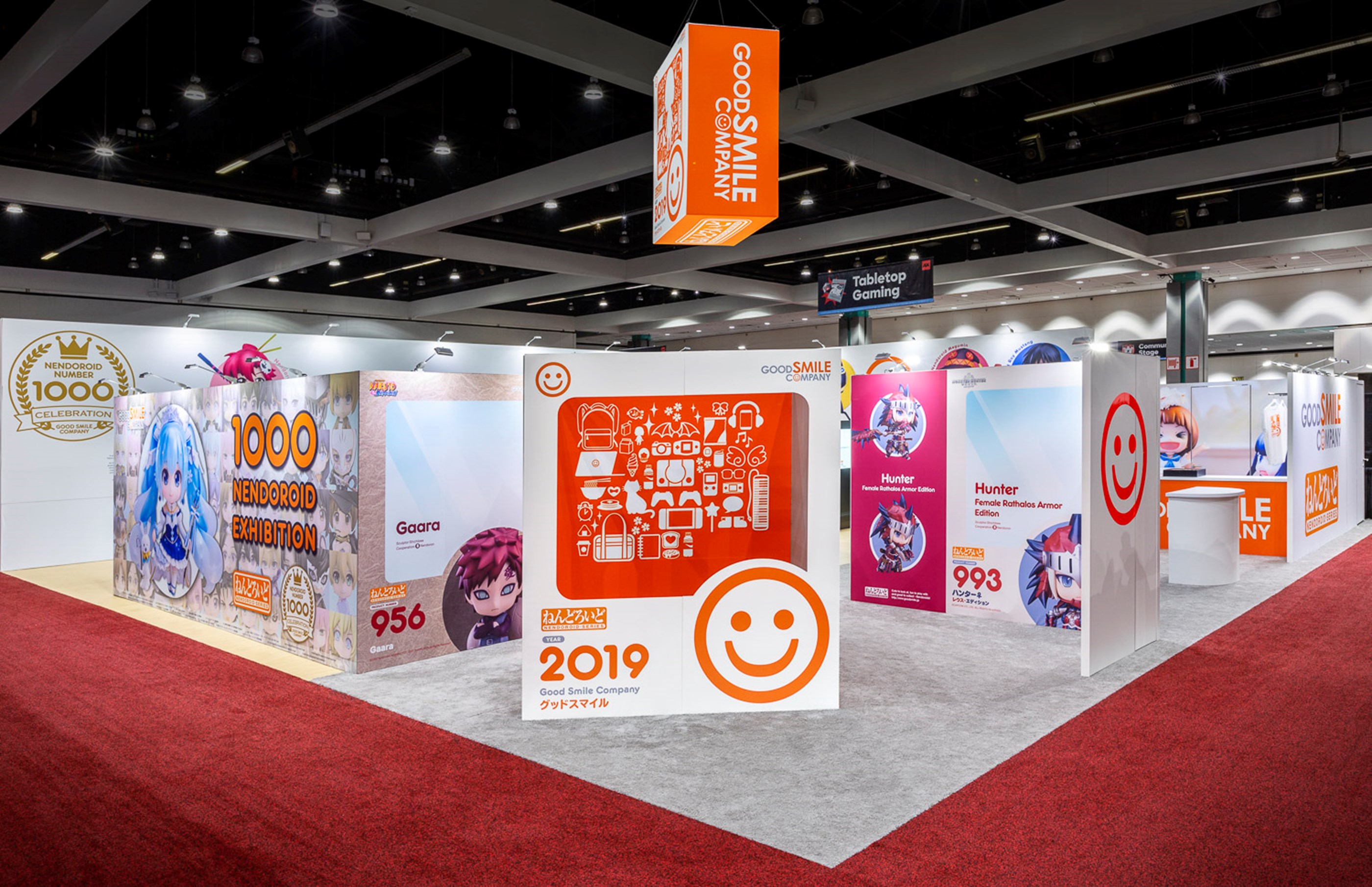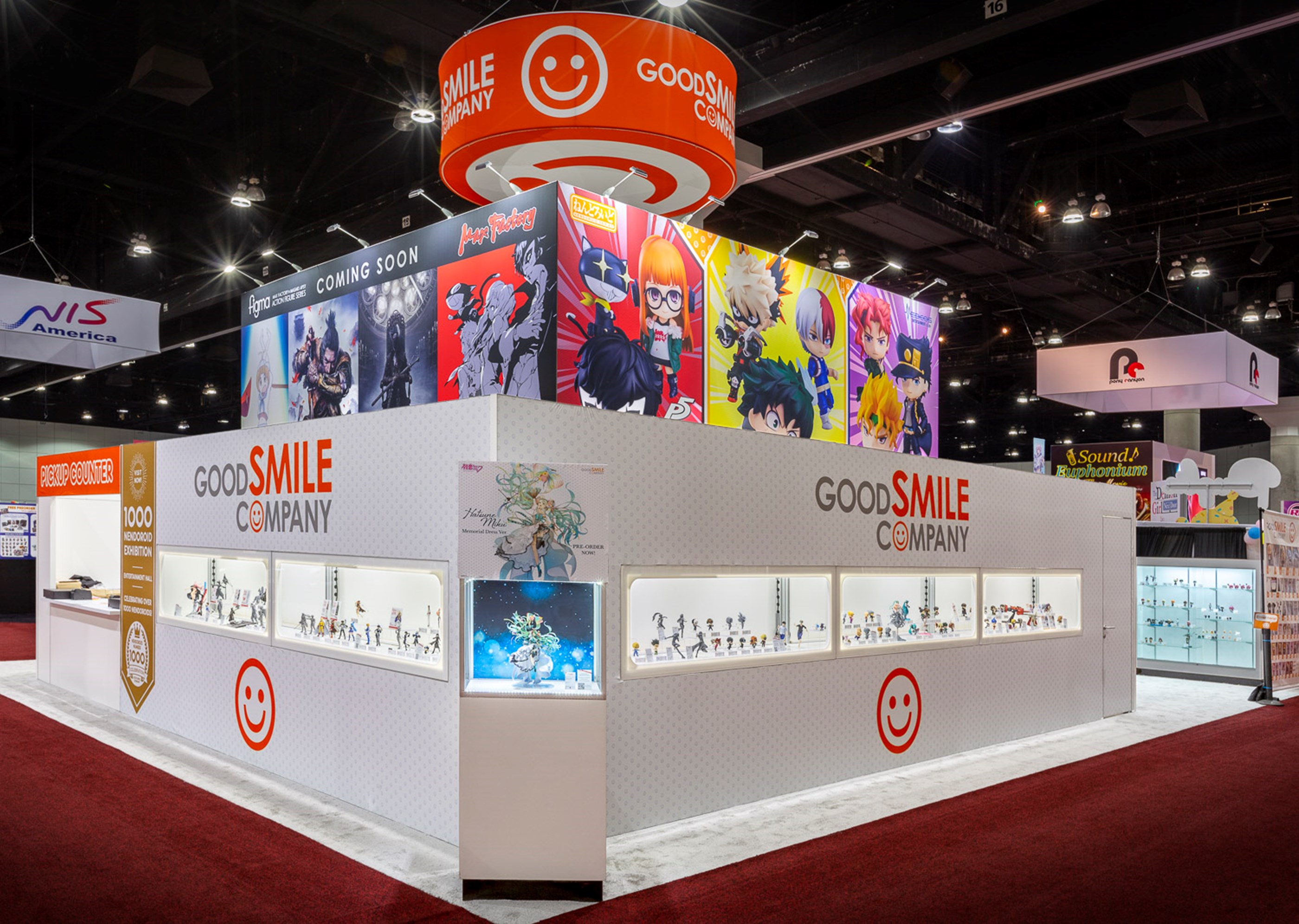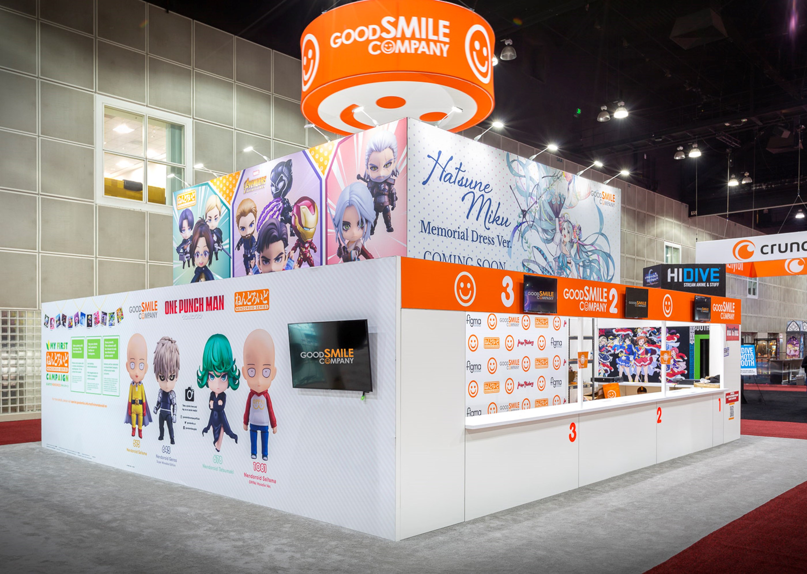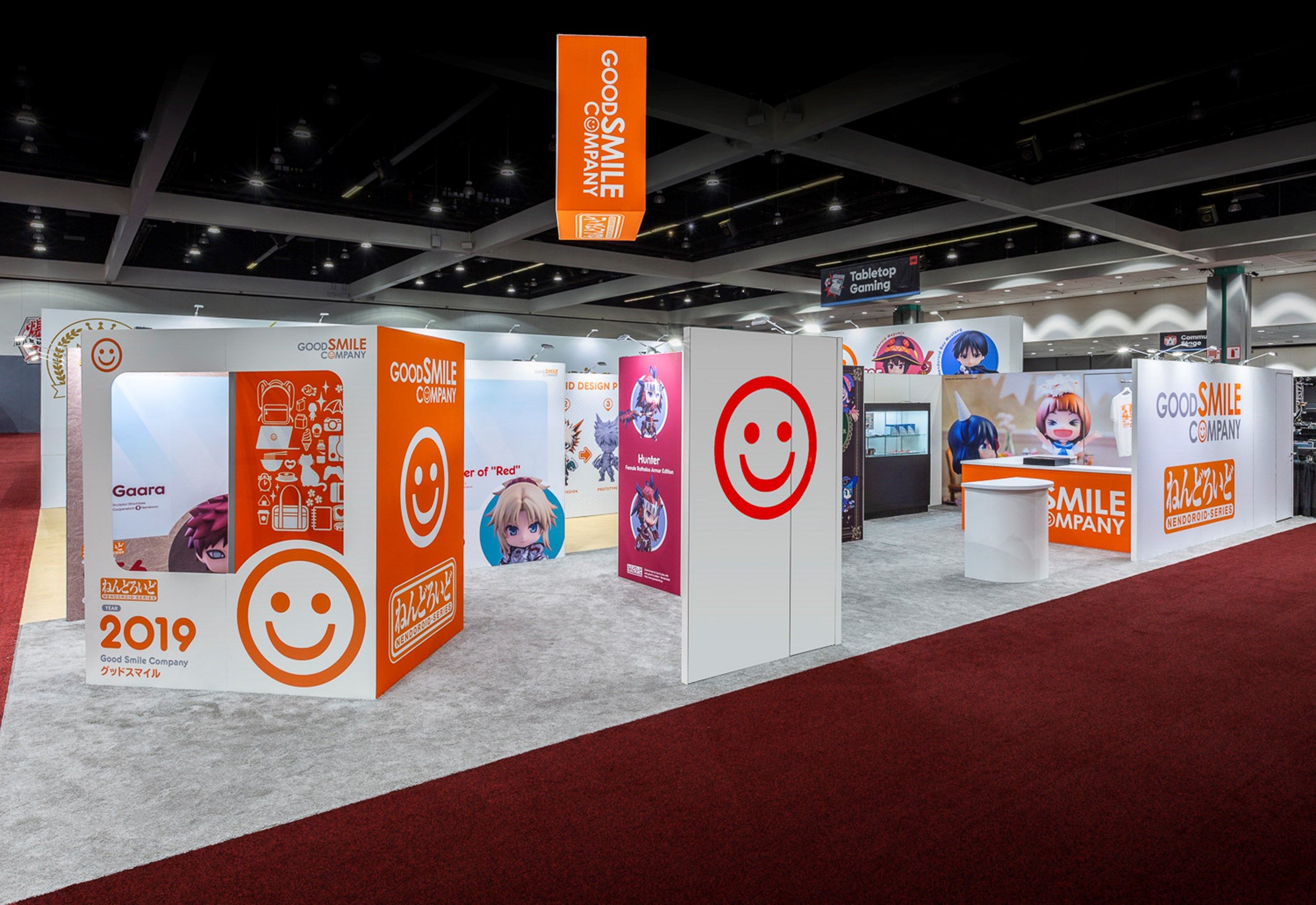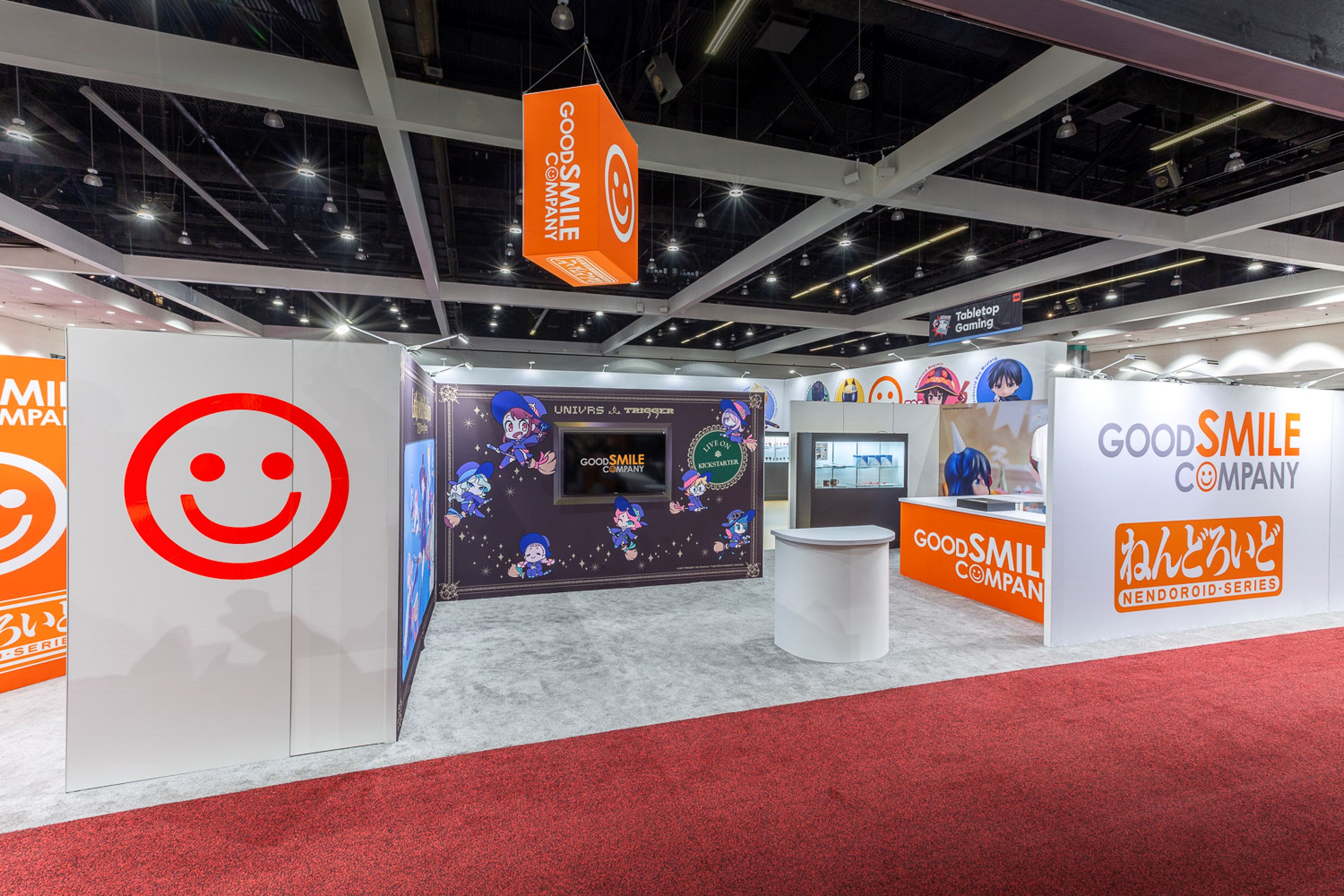 Good Smile wanted to make a huge impact at the show, taking prospective buyers on an interactive journey through their exhibit so they could understand the product lines Good Smile offered. In addition, the exhibit called for specific journey paths, multiple experiences along the journey path, and a comprehensive view of their portfolio of products – all with two separate exhibit spaces.