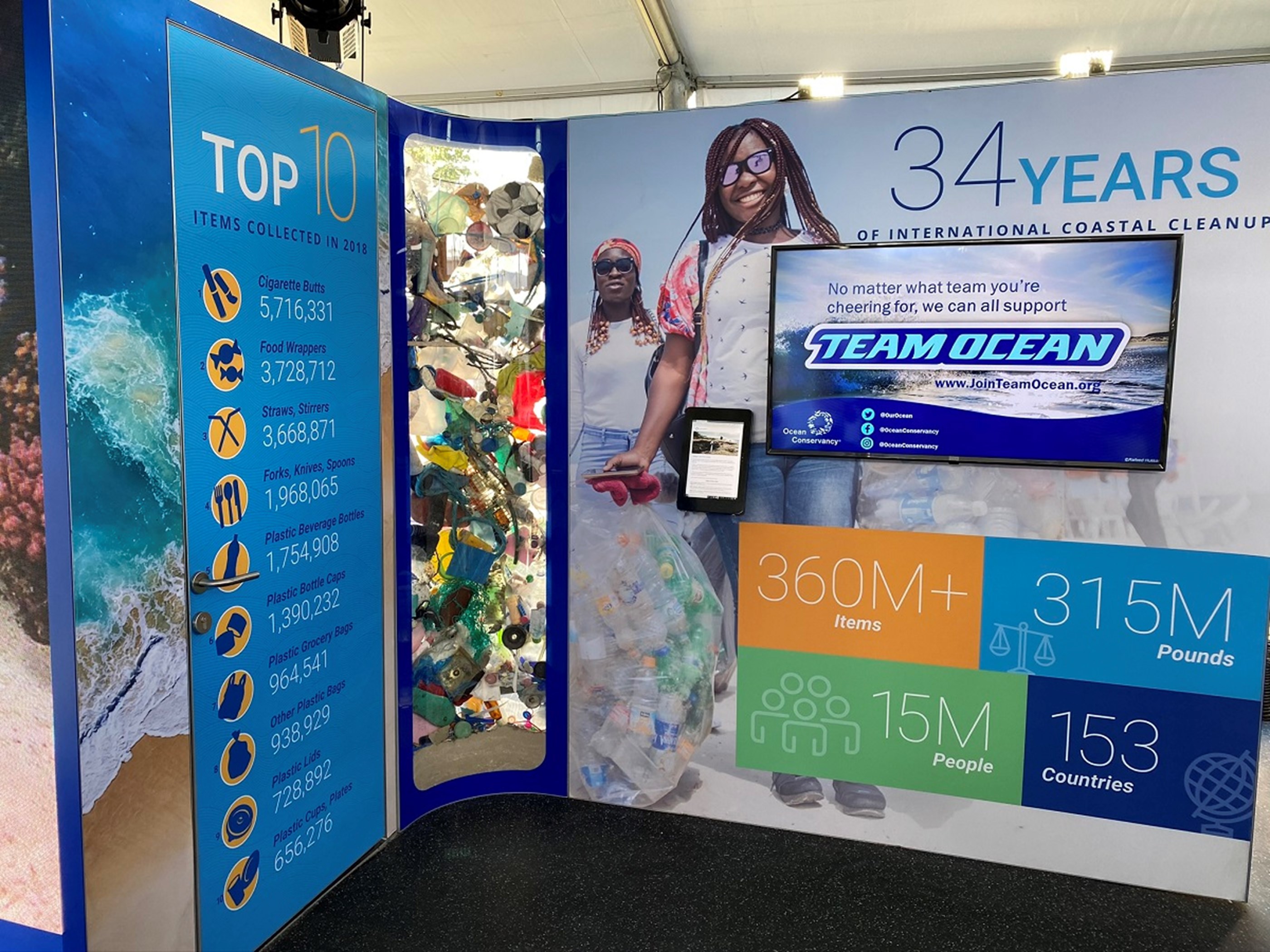 Another exhibit celebrated the success of the #SuperCleanupChallenge. The Ocean Conservancy surpassed their goal of removing and diverting 54 tons of ocean plastic and trash from Florida’s coasts and waterways.