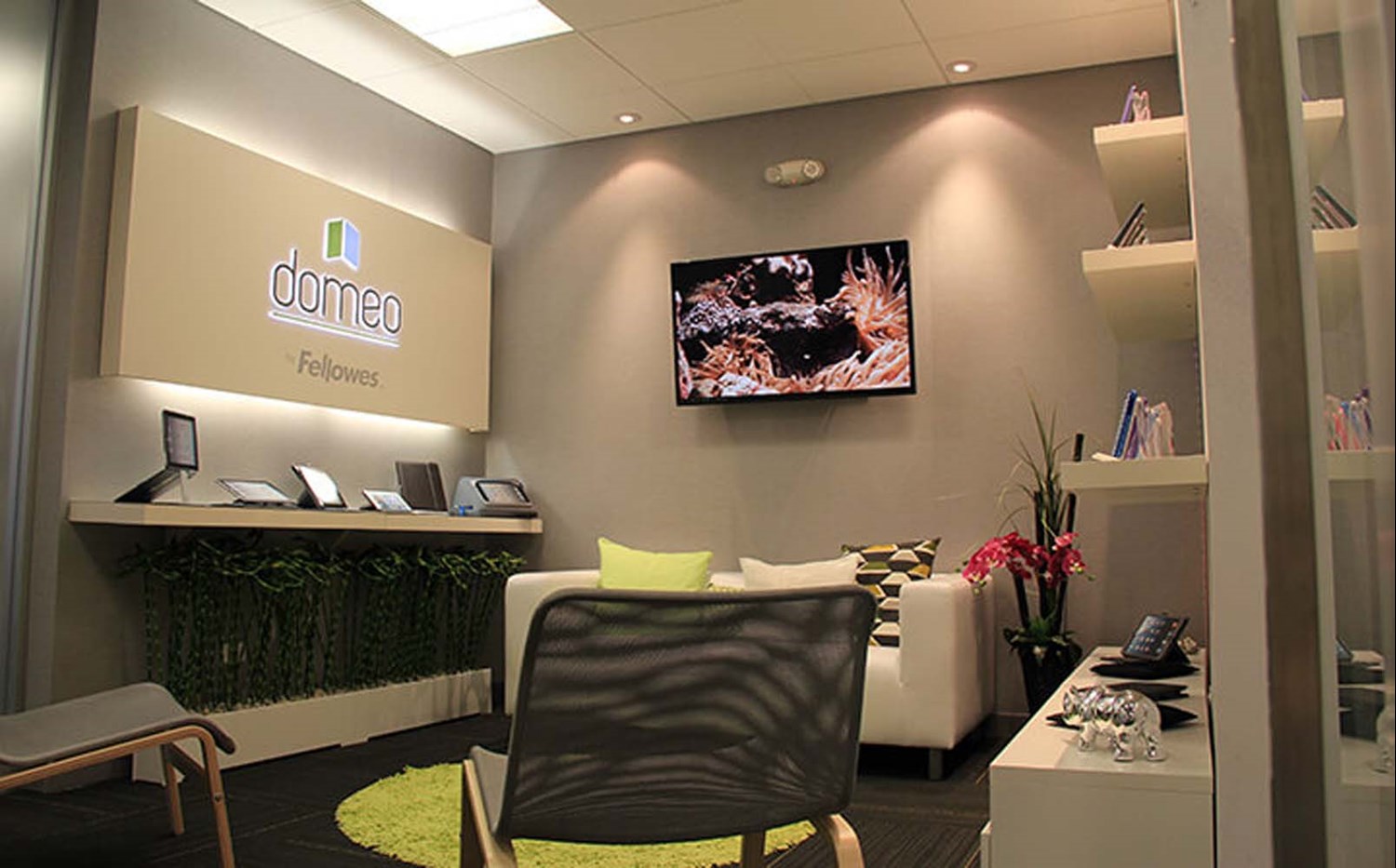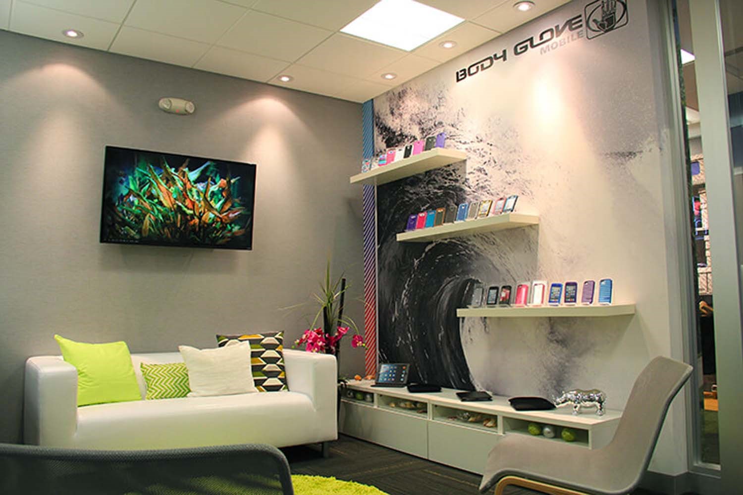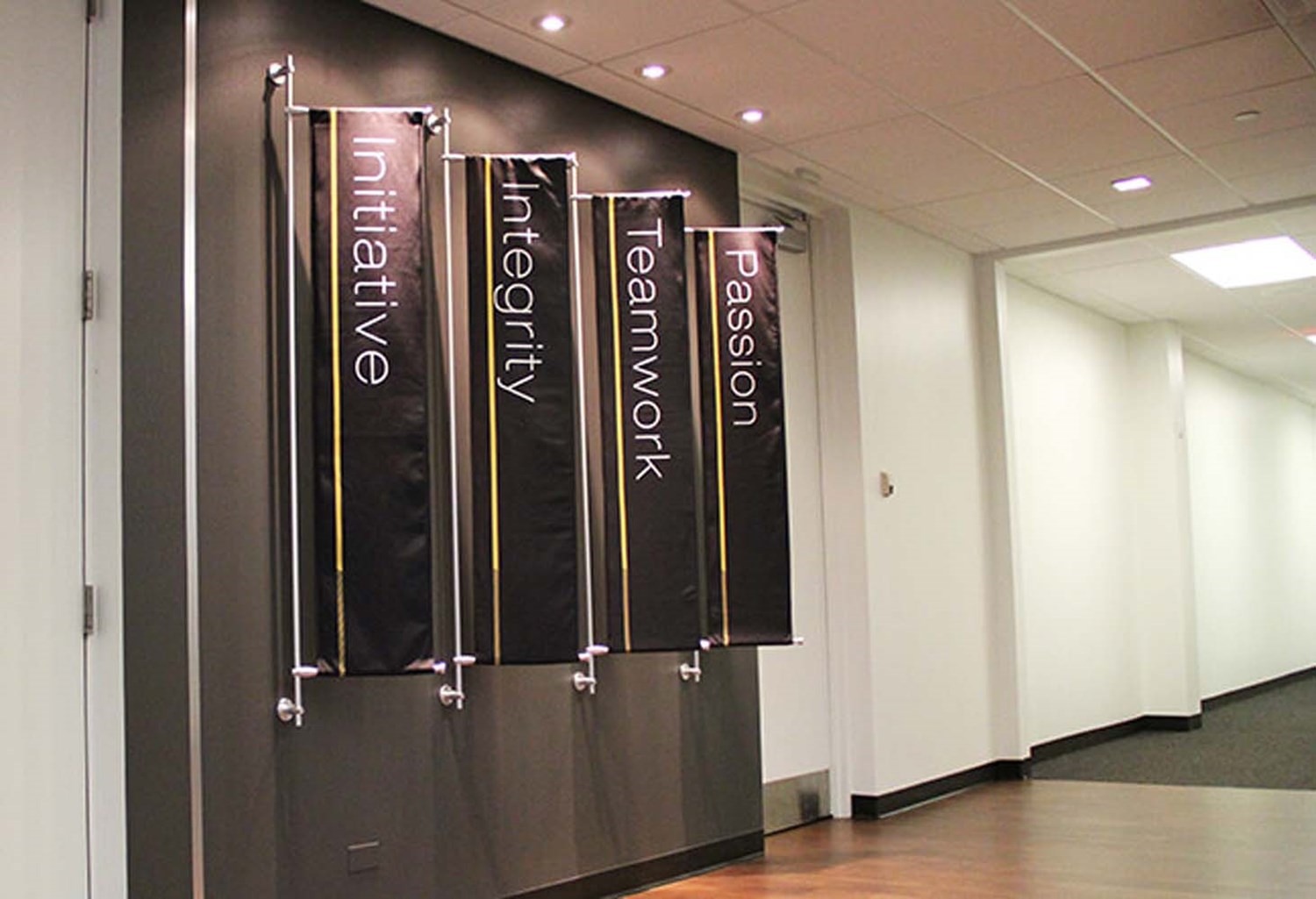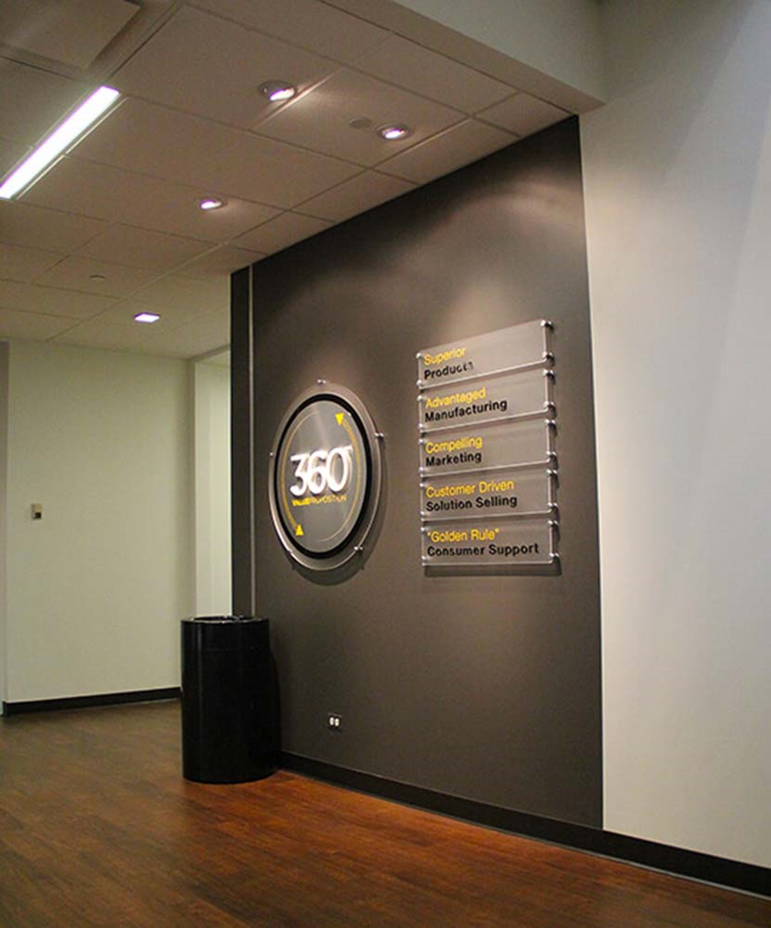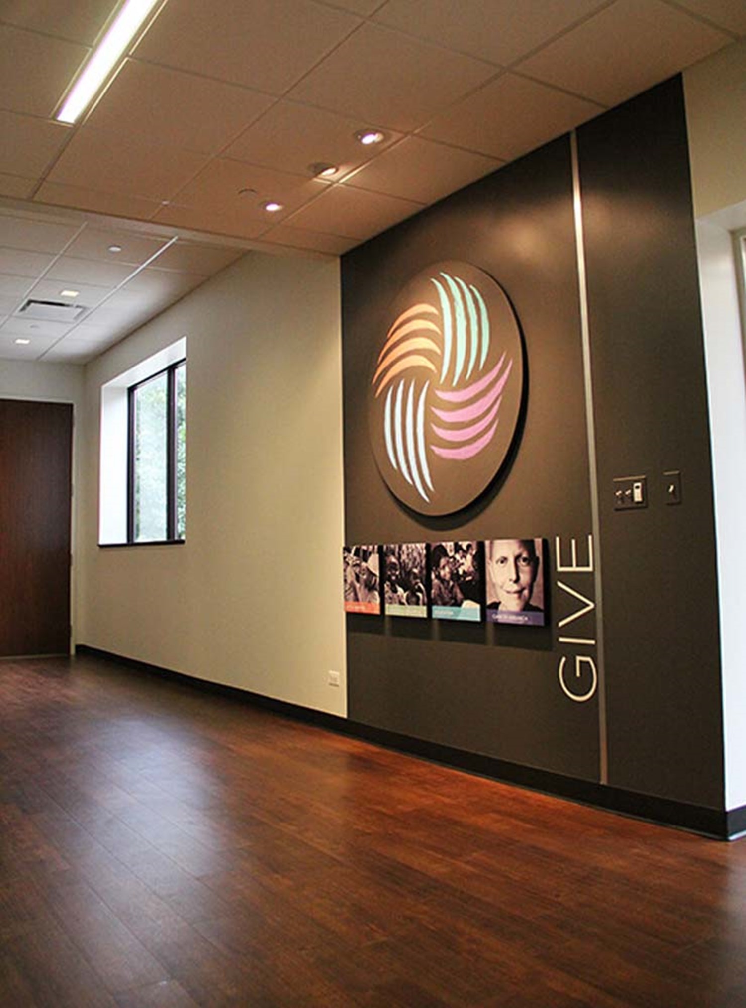 We take on multi-faceted brand spaces. The three individual rooms offer meaningful experiences for our clients, each with a unique concept. Modern laminate shelving with digital wallpaper background, pole pocket banners and back-lit signage along with three-dimensional chrome structures on stand-offs were added to the design. The bamboo plant box and additional décor were added as final touches.