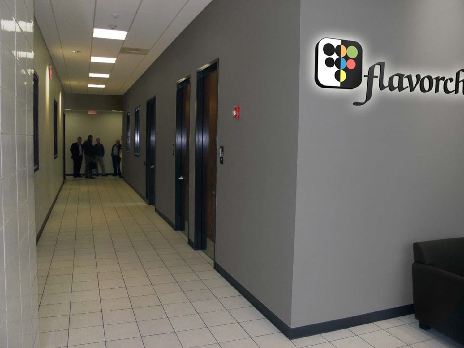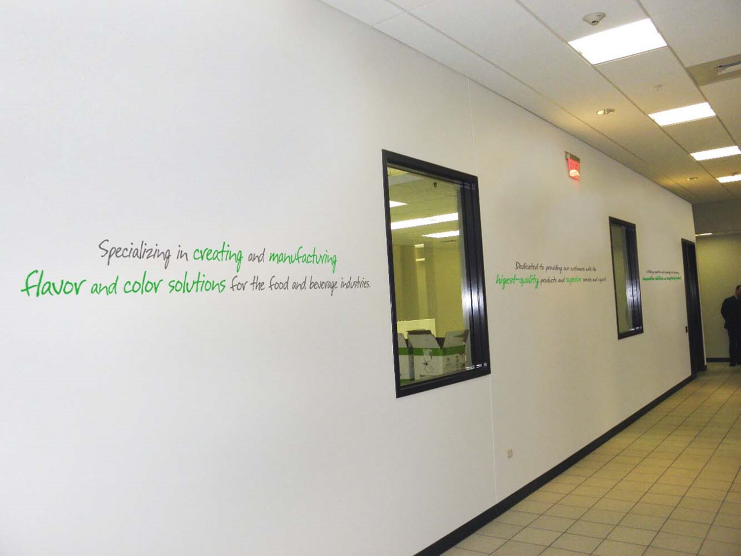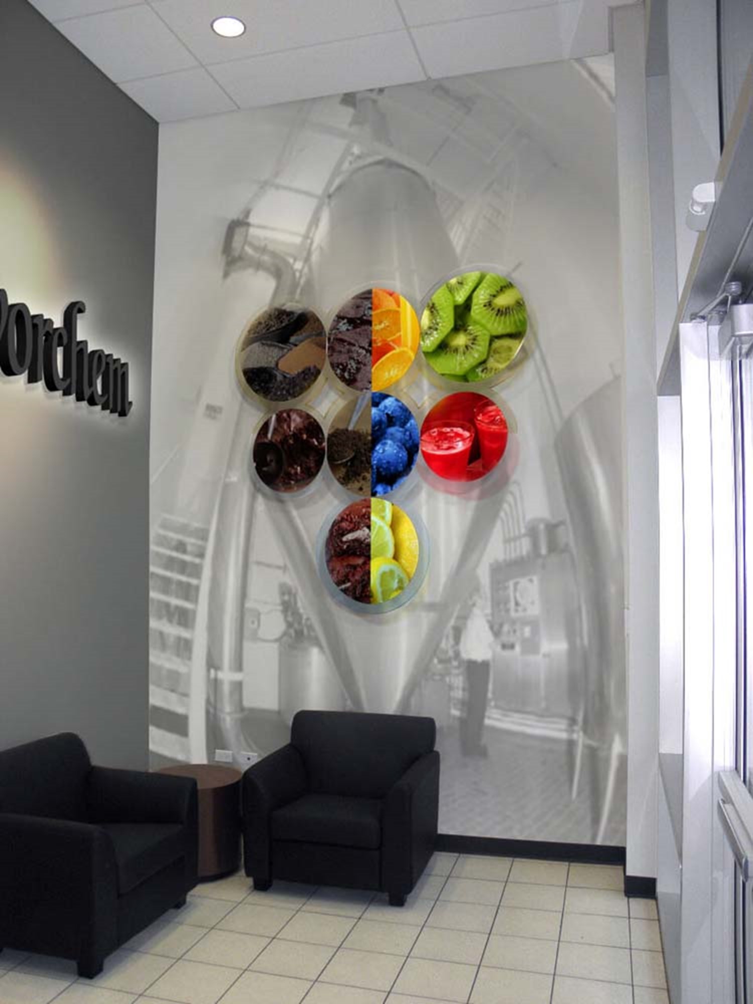 Three-Dimensional Lobby Fixtures and Vinyl Text on Corporate Walls