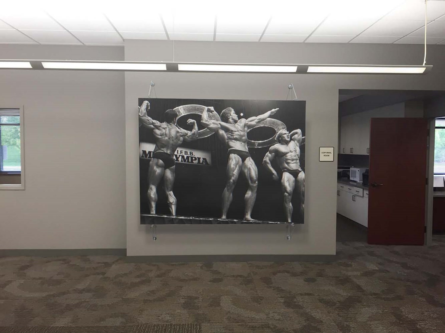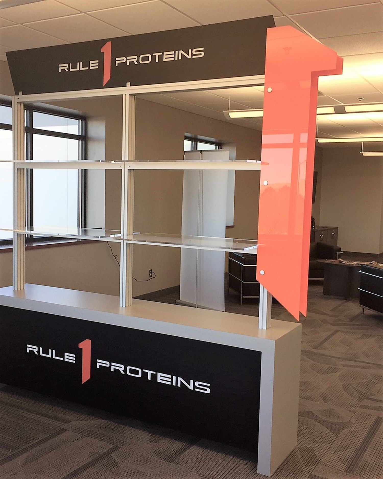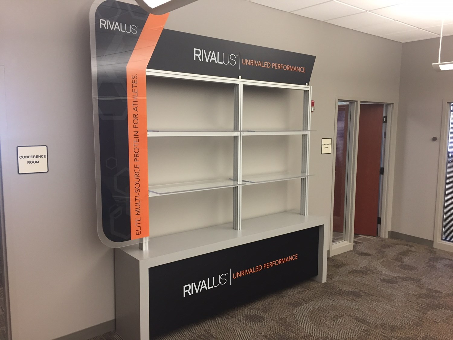 To create a signature environment, we focused on developing a unique link to the company's brand and space by incorporating multi-panel graphics which allowed the imagery to do the talking. The outcome is a workplace resonating with the brand's culture and values. The display cases bring to life the company's product with vivid colors and bold logos create a focal point.