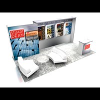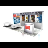 10' x 20' Custom inline trade show display with pre-assembled aluminum FOUNDATION framing for custom appeal and tool-less installation. Large format graphics printed in-house for excellent color saturation and taut finish.