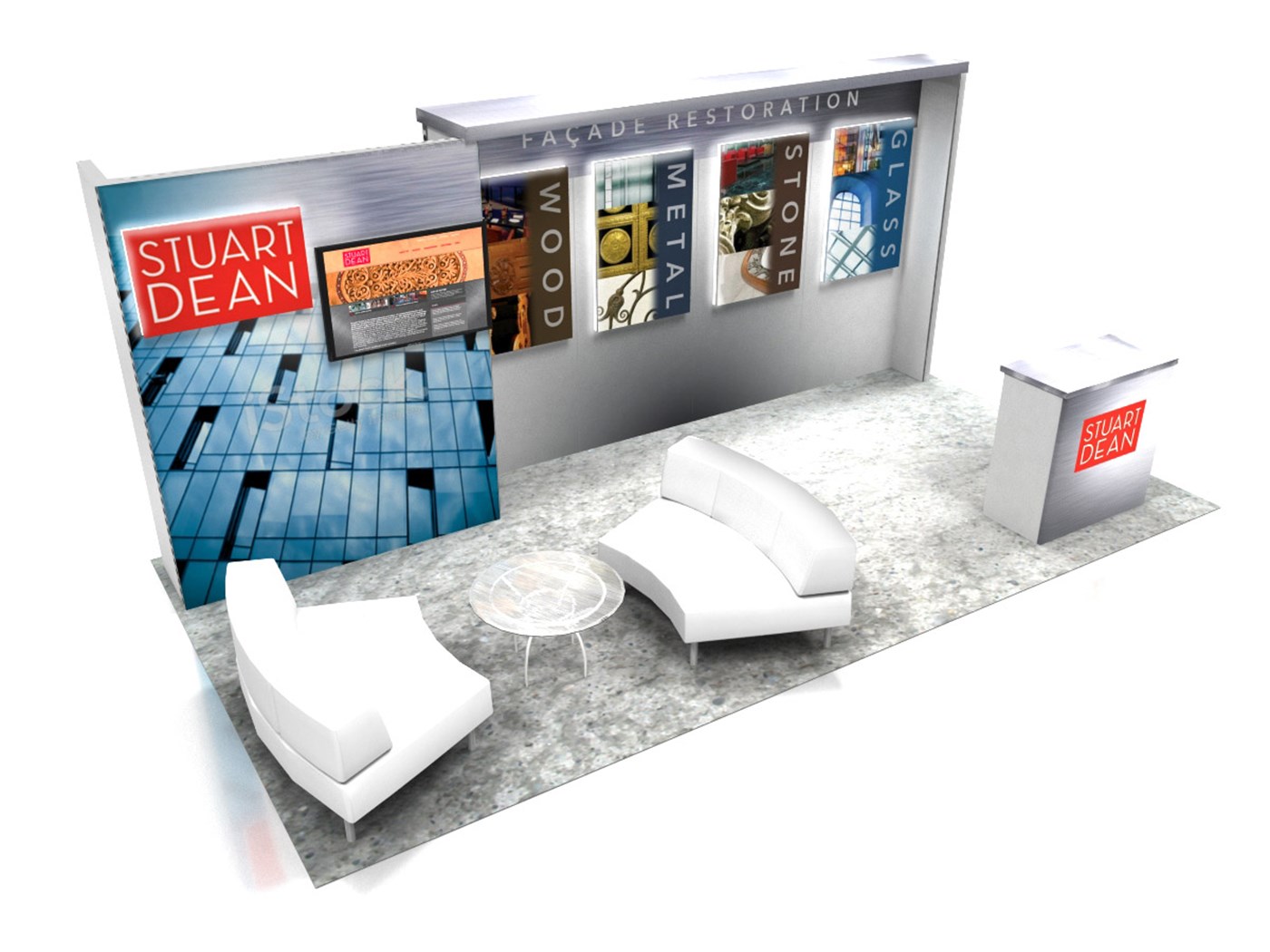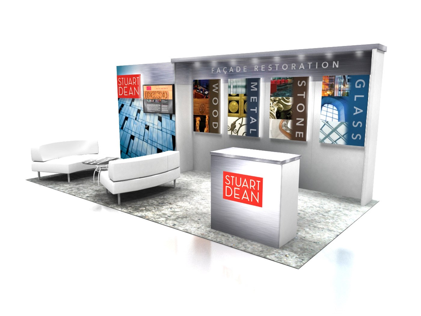 8' Tall recessed backwall with floor-to-ceiling tension fabric SEG graphics.