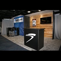 10' x 20' Inline trade show exhibit fabricated with pre-assembled aluminum FOUNDATION framing for tool-less installation, modular scalability and custom appeal. Large format tension fabric graphics printed in-house for excellent taut finish.