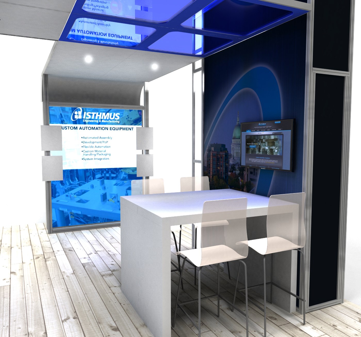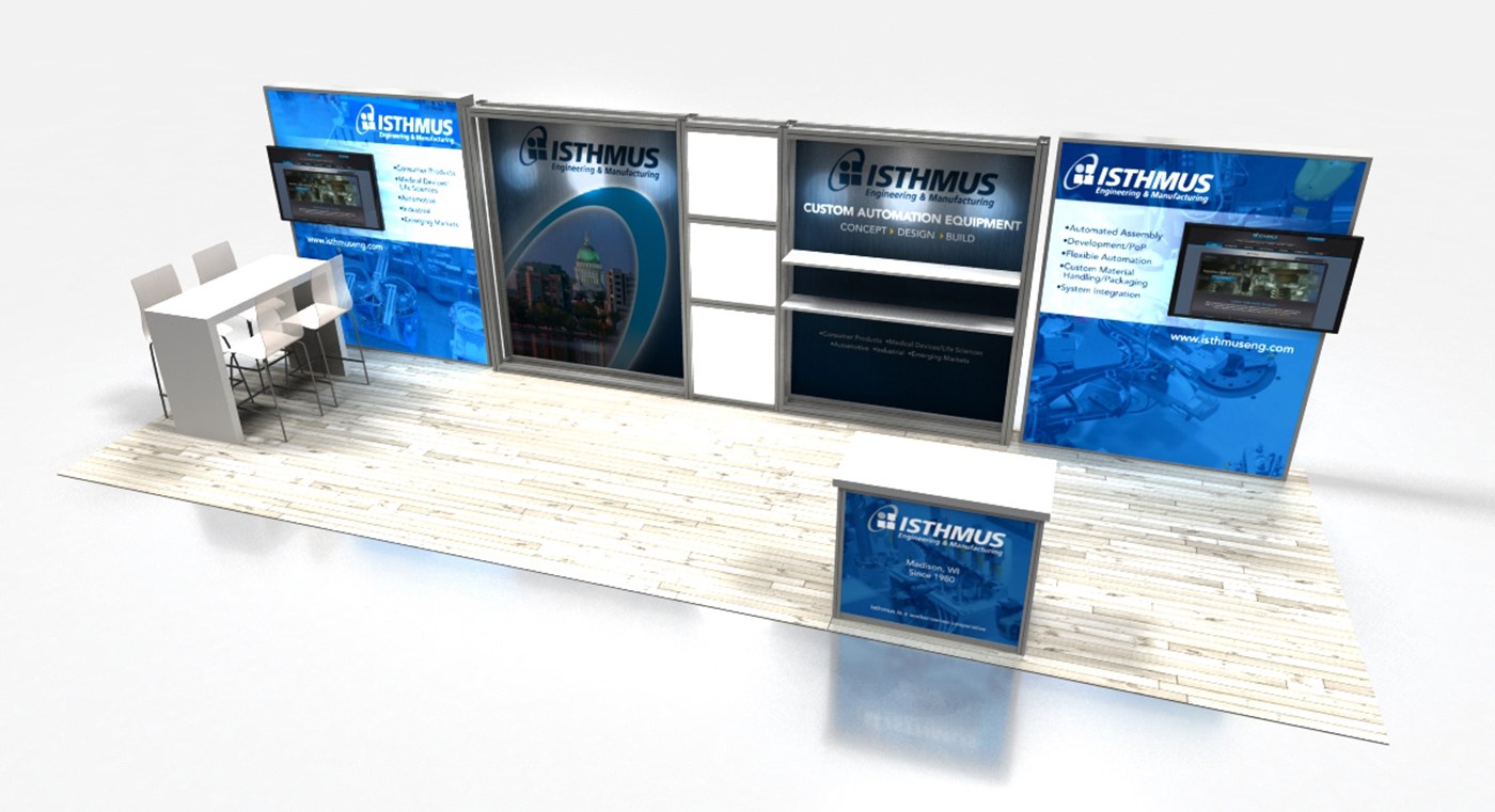 20' x 20' Trade show exhibit fabricated with engineered aluminum LEGACY extrusion. Large format graphics printed in-house for excellent fit-n-finish look.