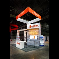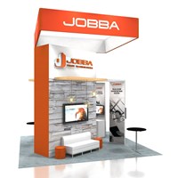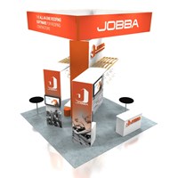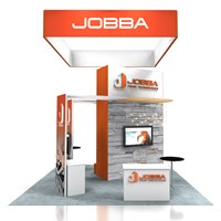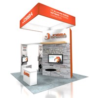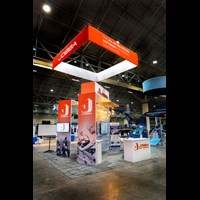 20' x 20' Trade show display fabricated with pre-assembled aluminum FOUNDATION framing for tool-less installation, custom appeal and modular scalability. Large format graphics printed in-house for superior edge-to-edge taut finish.