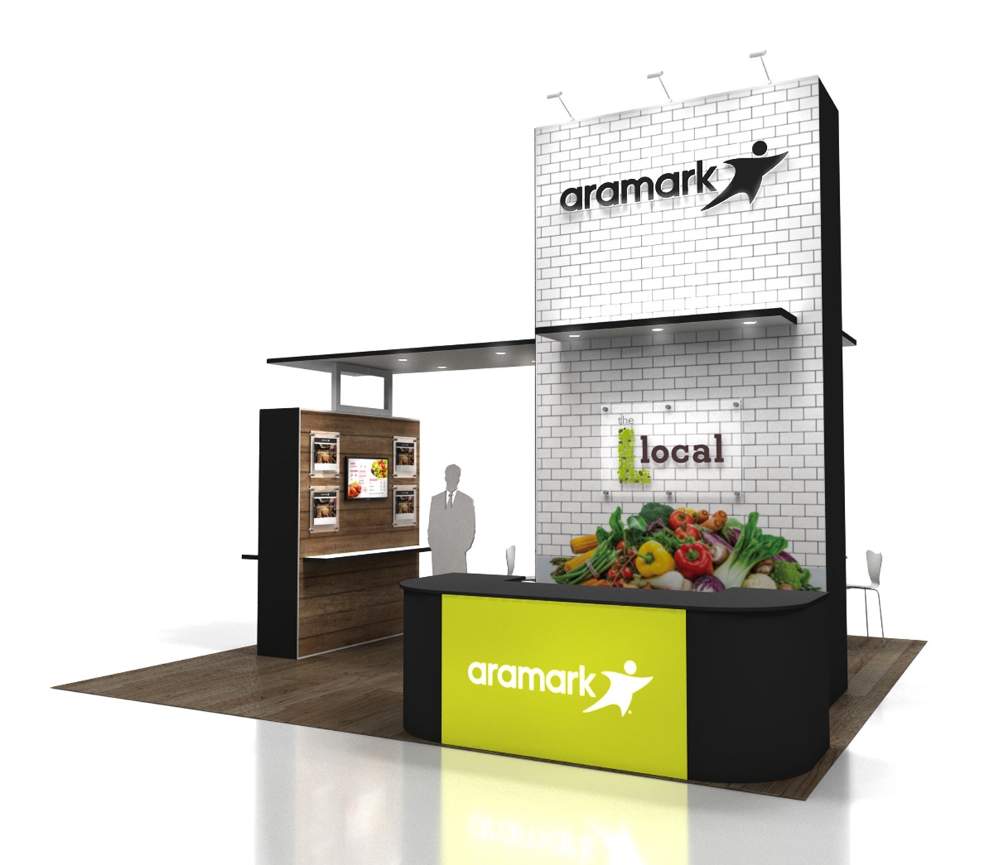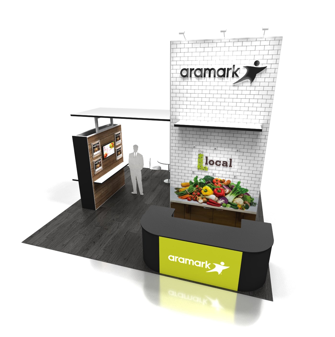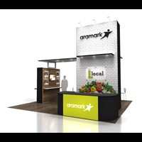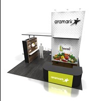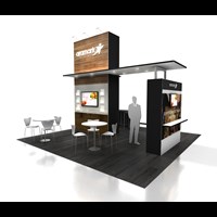 20'x 20' Designed with pre-assembled aluminum FOUNDATION framing for modular scalability, tool-less installation and custom appeal. Large format tension fabric graphics printed in-house for excellent edge-to-edge taut finish.