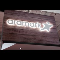 Optional items include (2) halo-lit dimensional logos, reception counter with graphic, shelving and acrylic mounted graphics with brushed aluminum hardware.