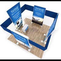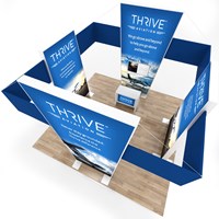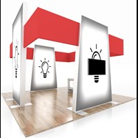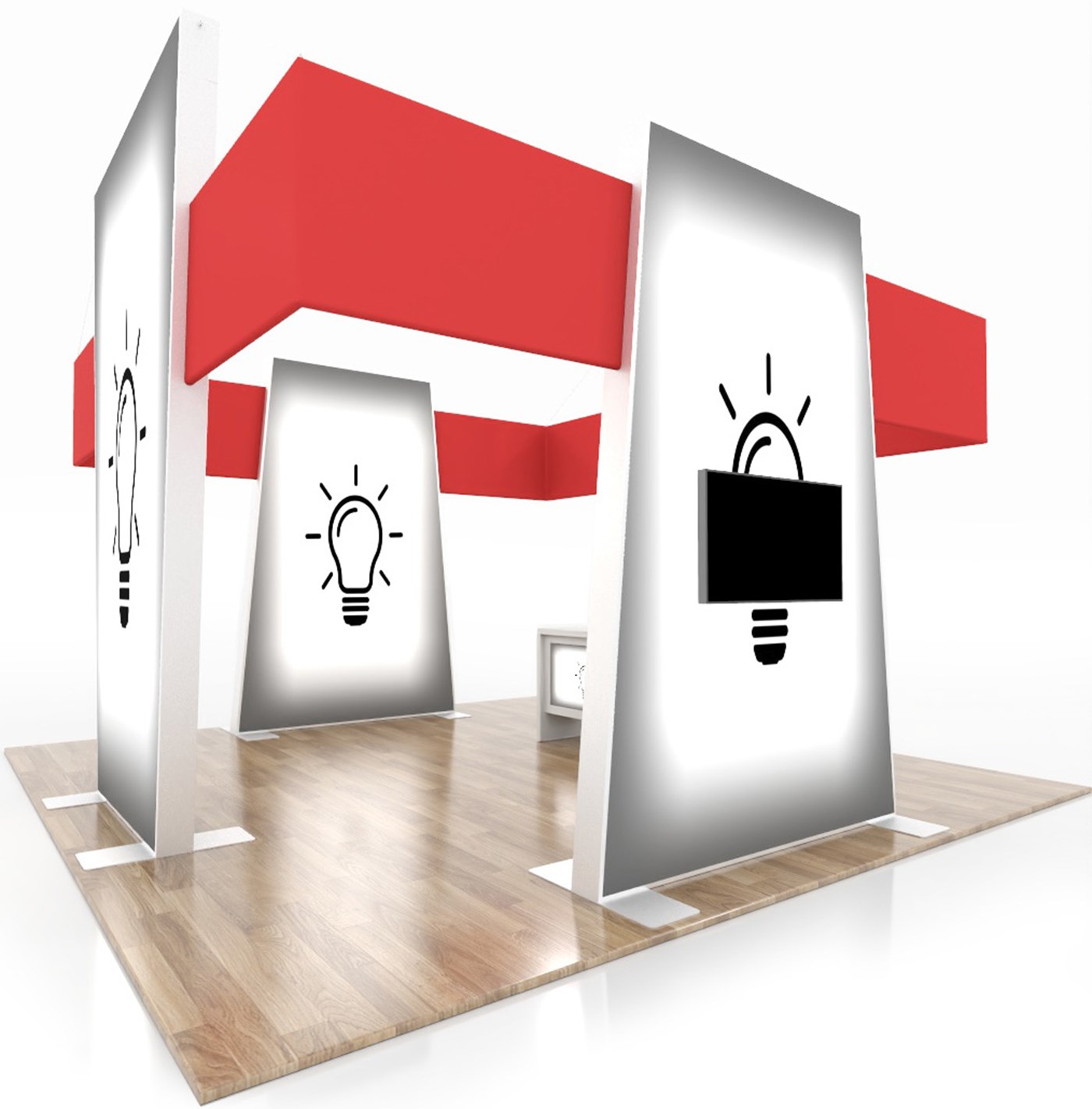 SYNC 20' x 20' Island Exhibit with Backlit Tapered Tower and Perimeter Header