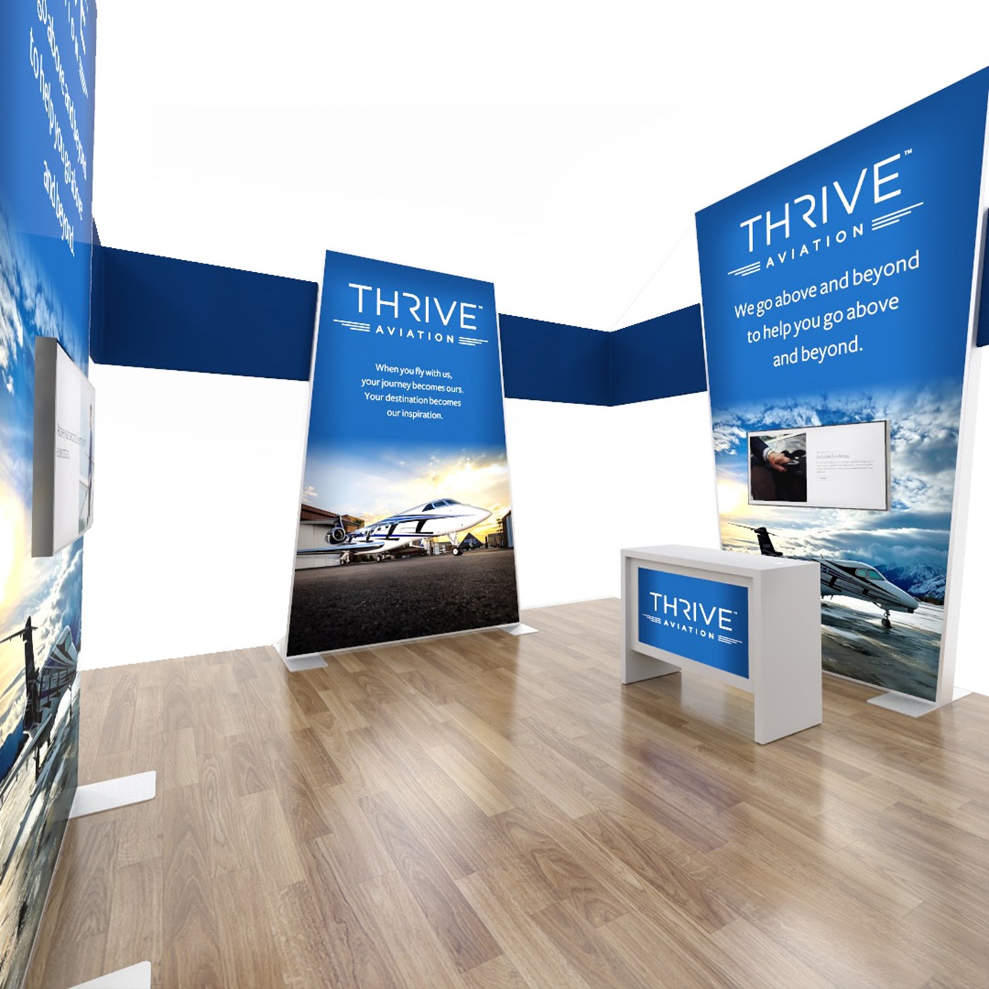 Illumination series designs combine lightweight tension fabric accents with large lightbox super-structures for a clean and powerful presence.