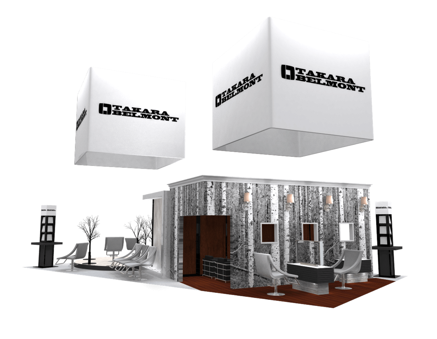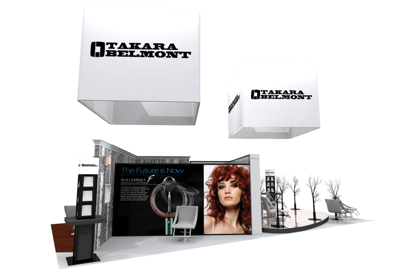 20' x 40' Island Exhibit with Cubed Hanging Structures
