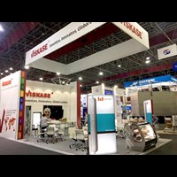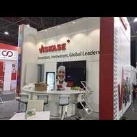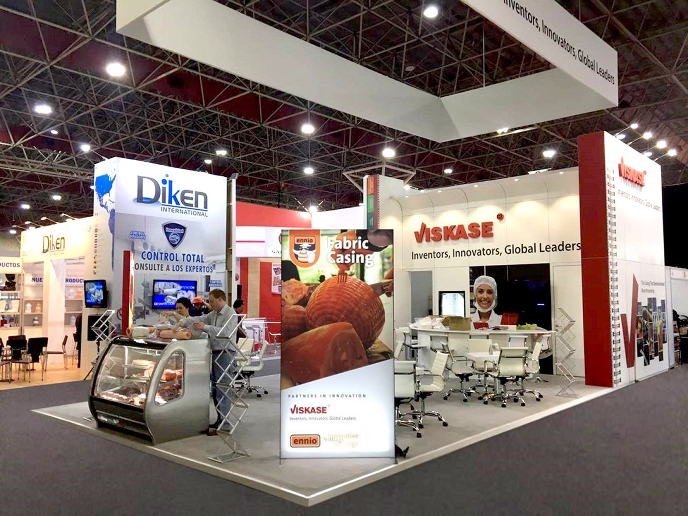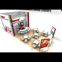 20' x 45' Trade show exhibit fabricated with pre-assembled aluminum FOUNDATION framing for custom appeal, modular scalability and tool-less installation. Large format dye-sublimation tension fabric SEG graphics printed in-house for superior color matching and taut finish.