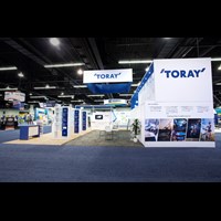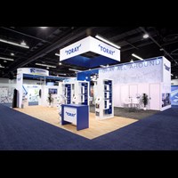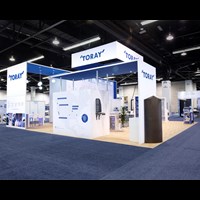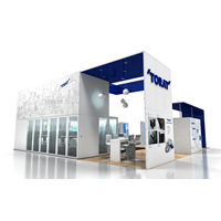 40' x 40' Trade show exhibit fabricated with pre-assembled aluminum FOUNDATION framing for tool-less installation, custom appeal and modular scalability. Large format graphics printed in-house for excellent color matching and taut finish.