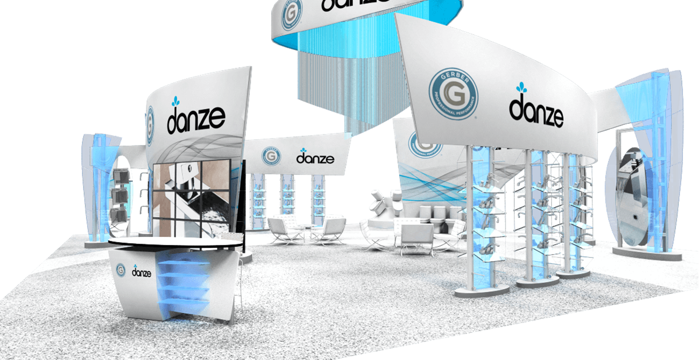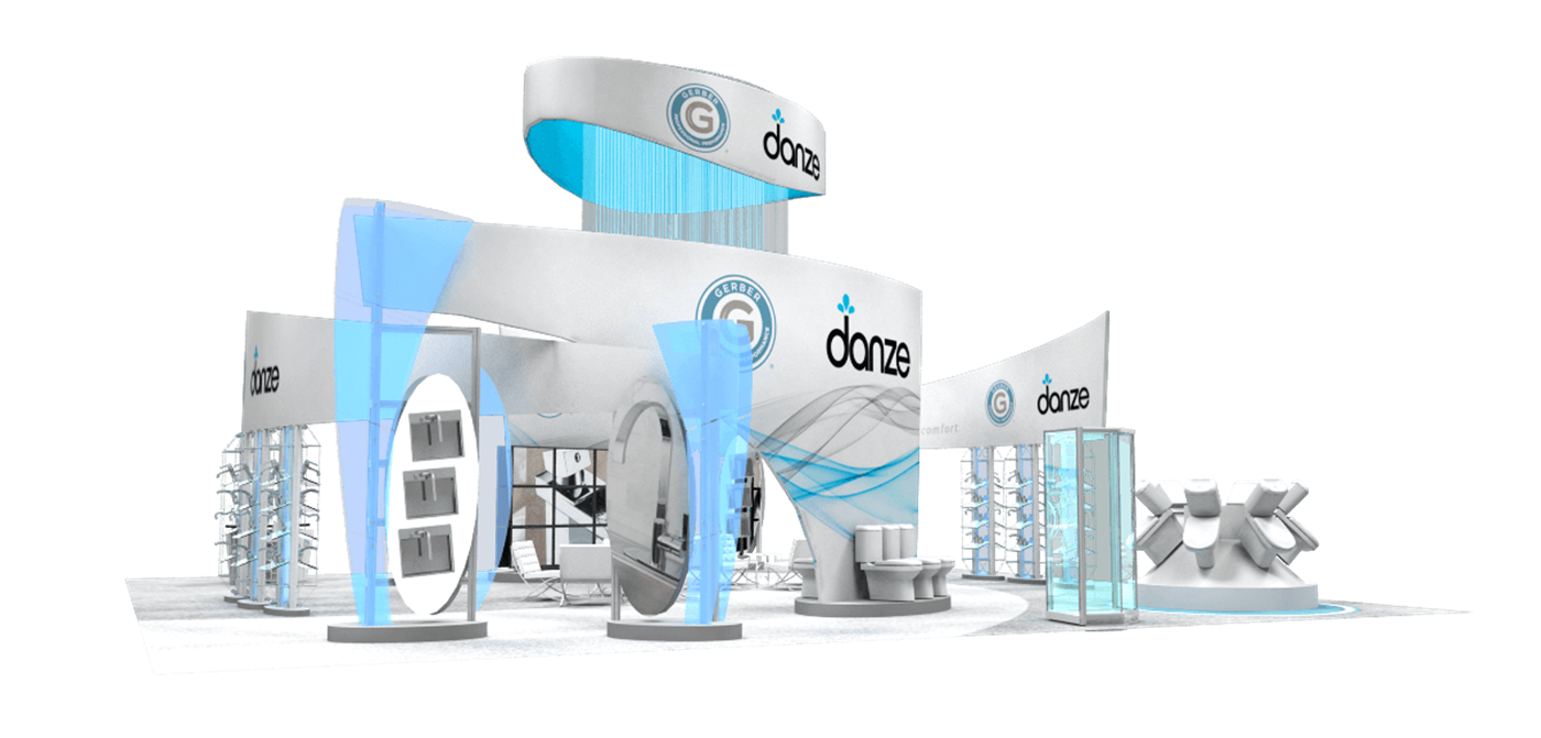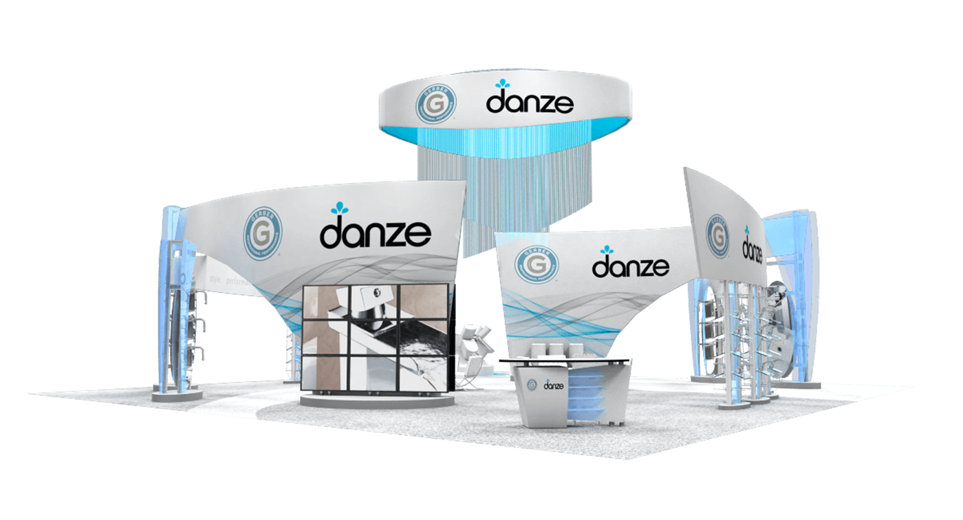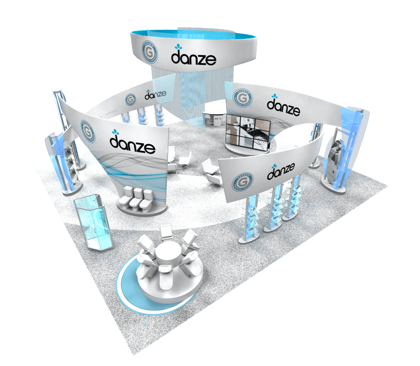 50' x 50' Island Exhibit with Curved Fabric Structures & Acrylic Accents