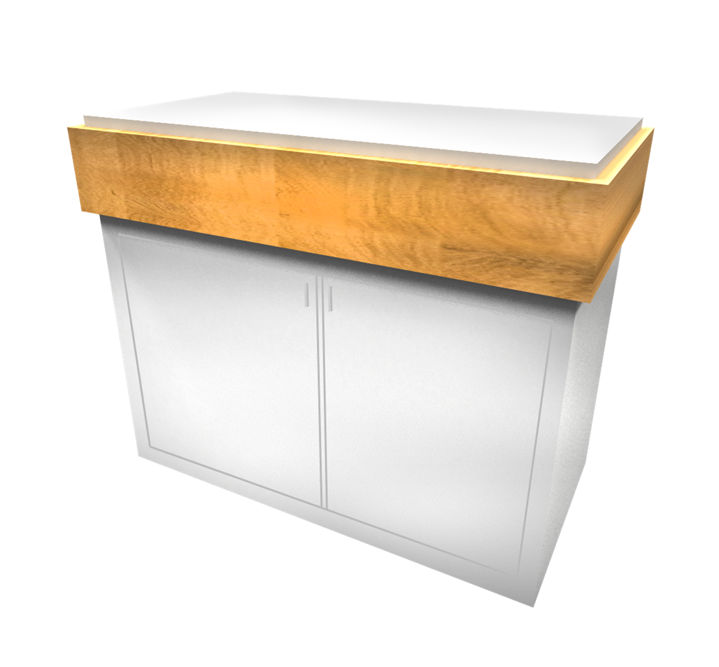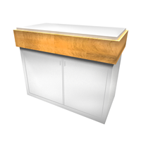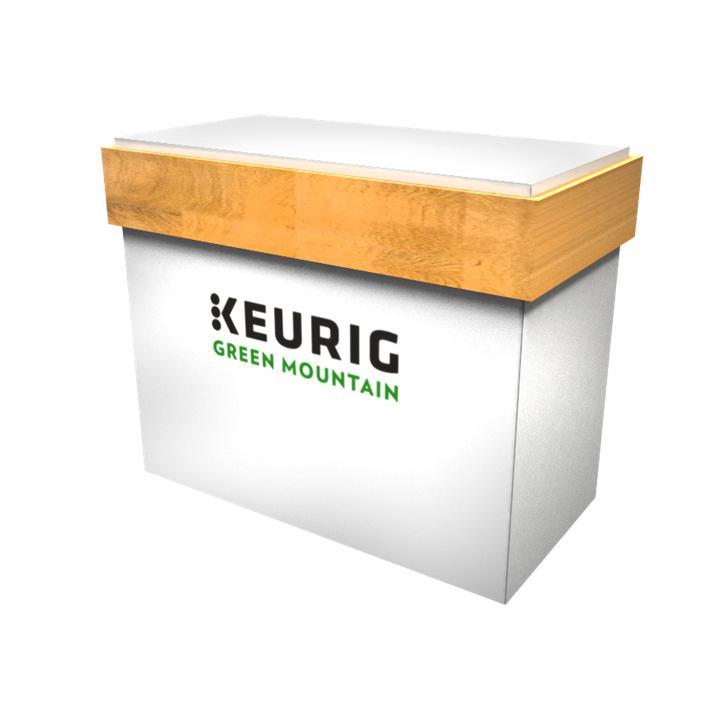 PA2450CCKE 50" Custom Counter with Veneer Accent $4,200 - $5,300 Modern product counter with wood veneer accent and branded logo.