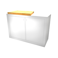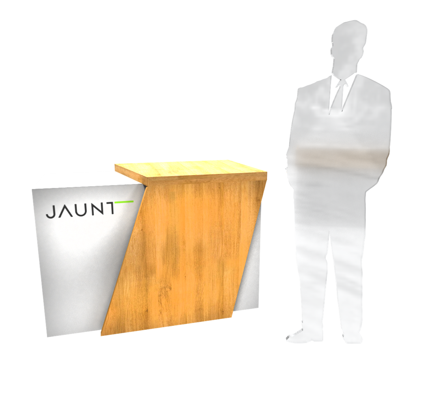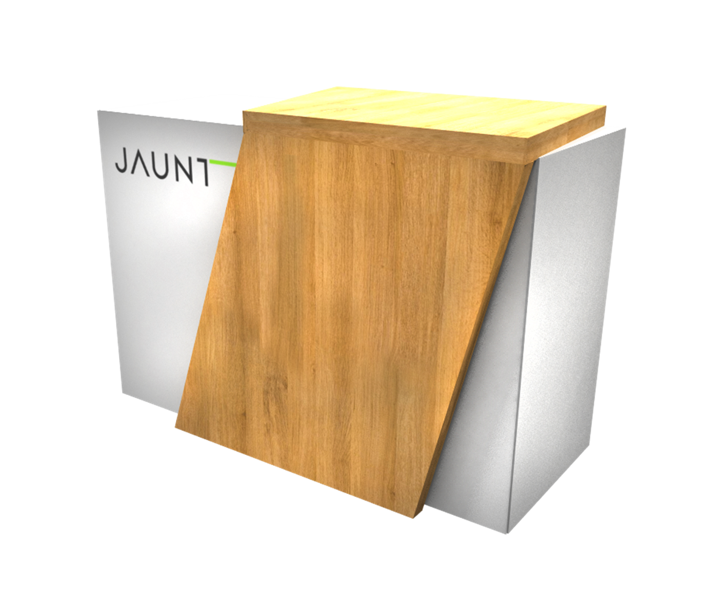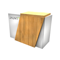 PA2760CCJA 60" Custom Counter with Angled Overlay $4,200 - $6,050 Modern reception counter with wood veneer angled overlay and branded logo.