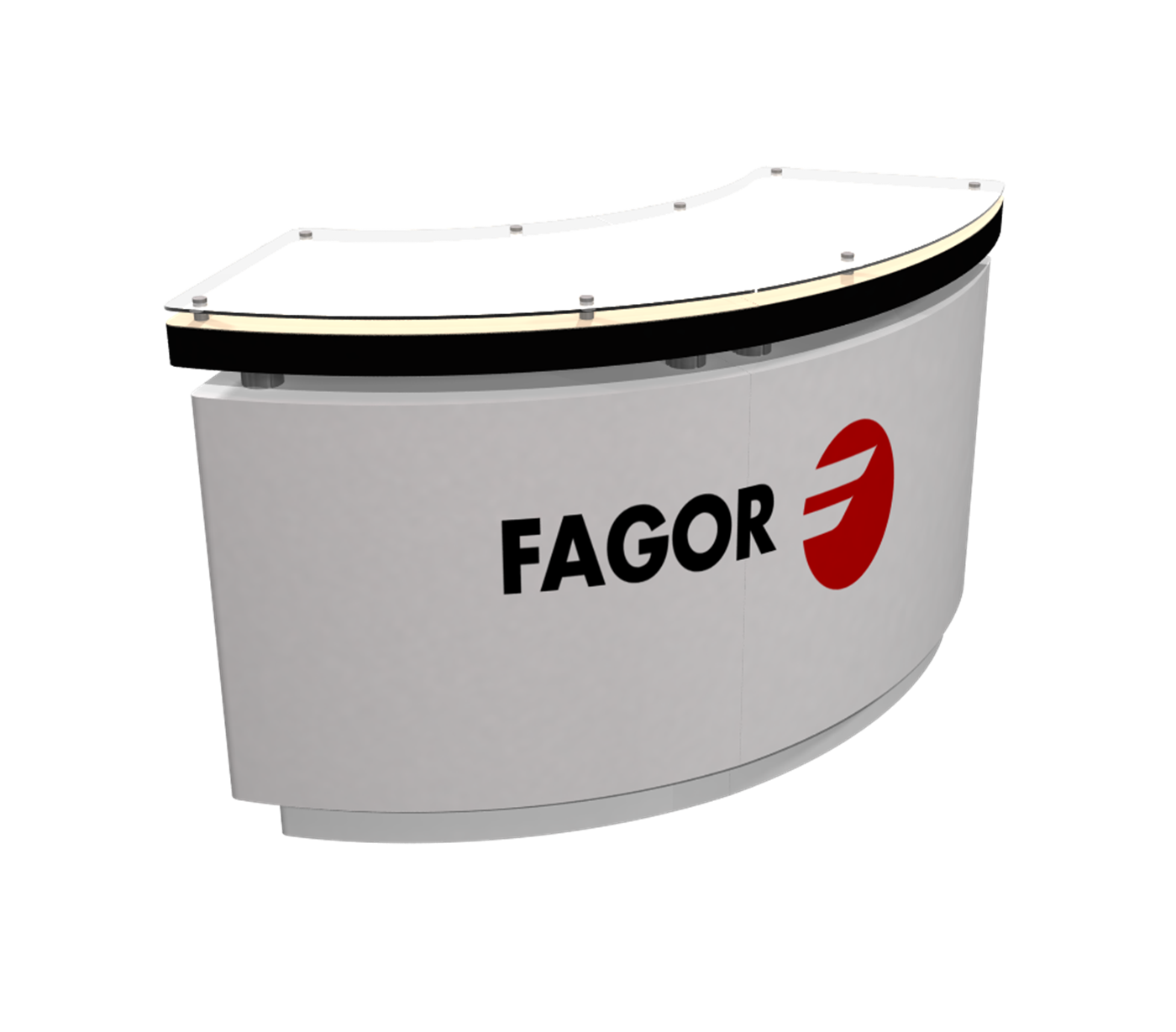 PAC2472CTC 72" Curved Crescent Counter with Tiers $5,050 - $6,800 Branded crescent curved counter with multiple tiers.