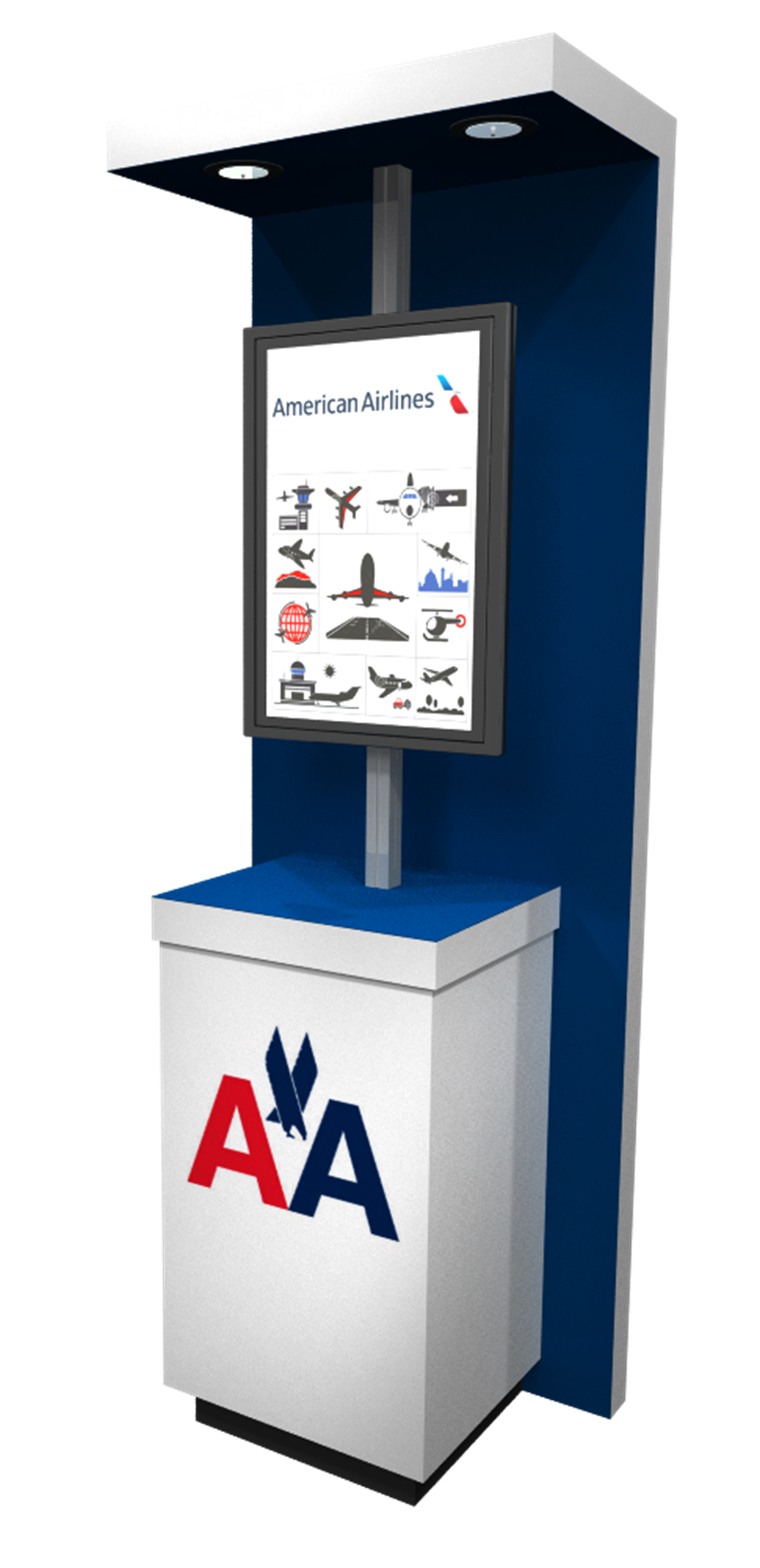 PAC3095KBWCC 95" Kiosk with Back-Wall and Canopy Ceiling $5,300 - $6,800 Techy kiosk with media screen, branded cabinet and back-wall with down-lighting.