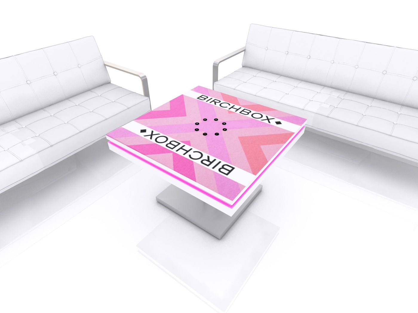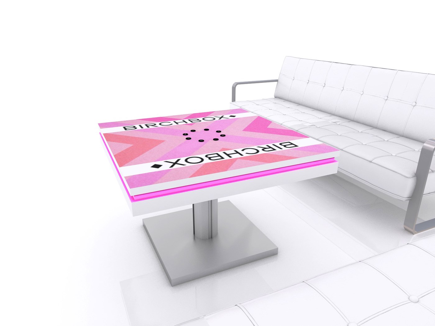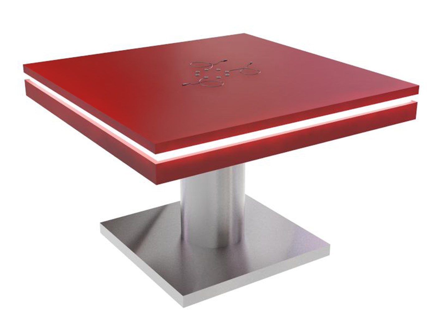 PAC30SCCT 30" Square Charging Coffee Table $1,950 - $2,400 Branded Square Coffee Charging Table with USB connectivity, top graphic and LED halo lighting.