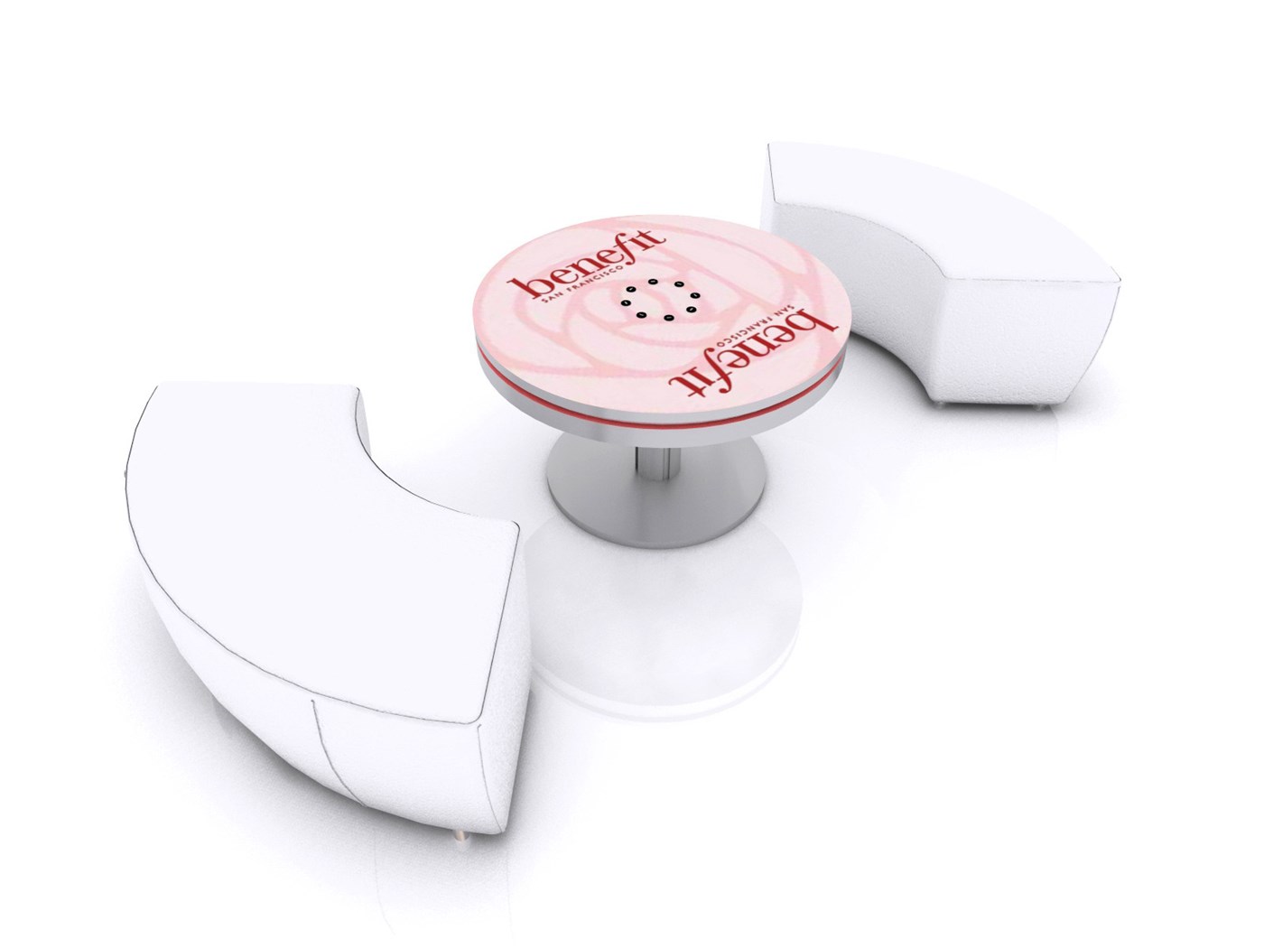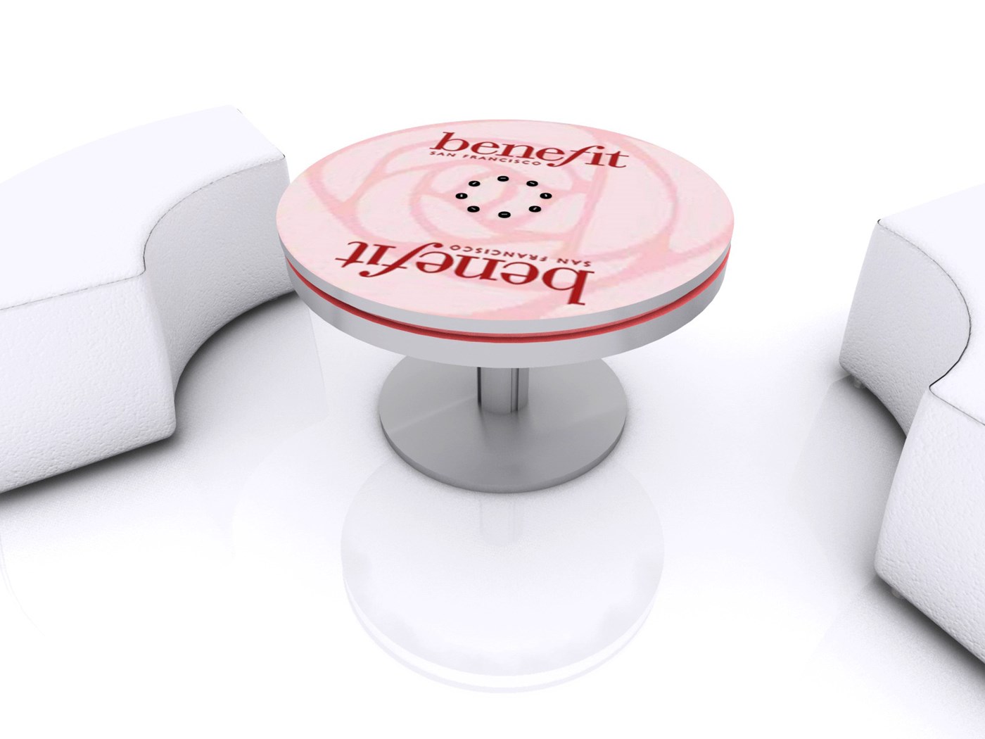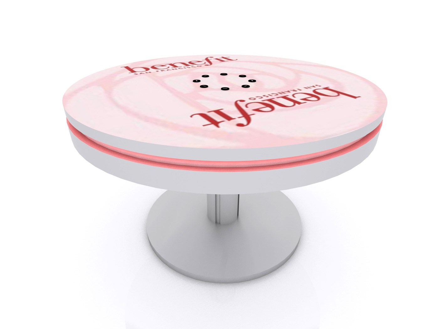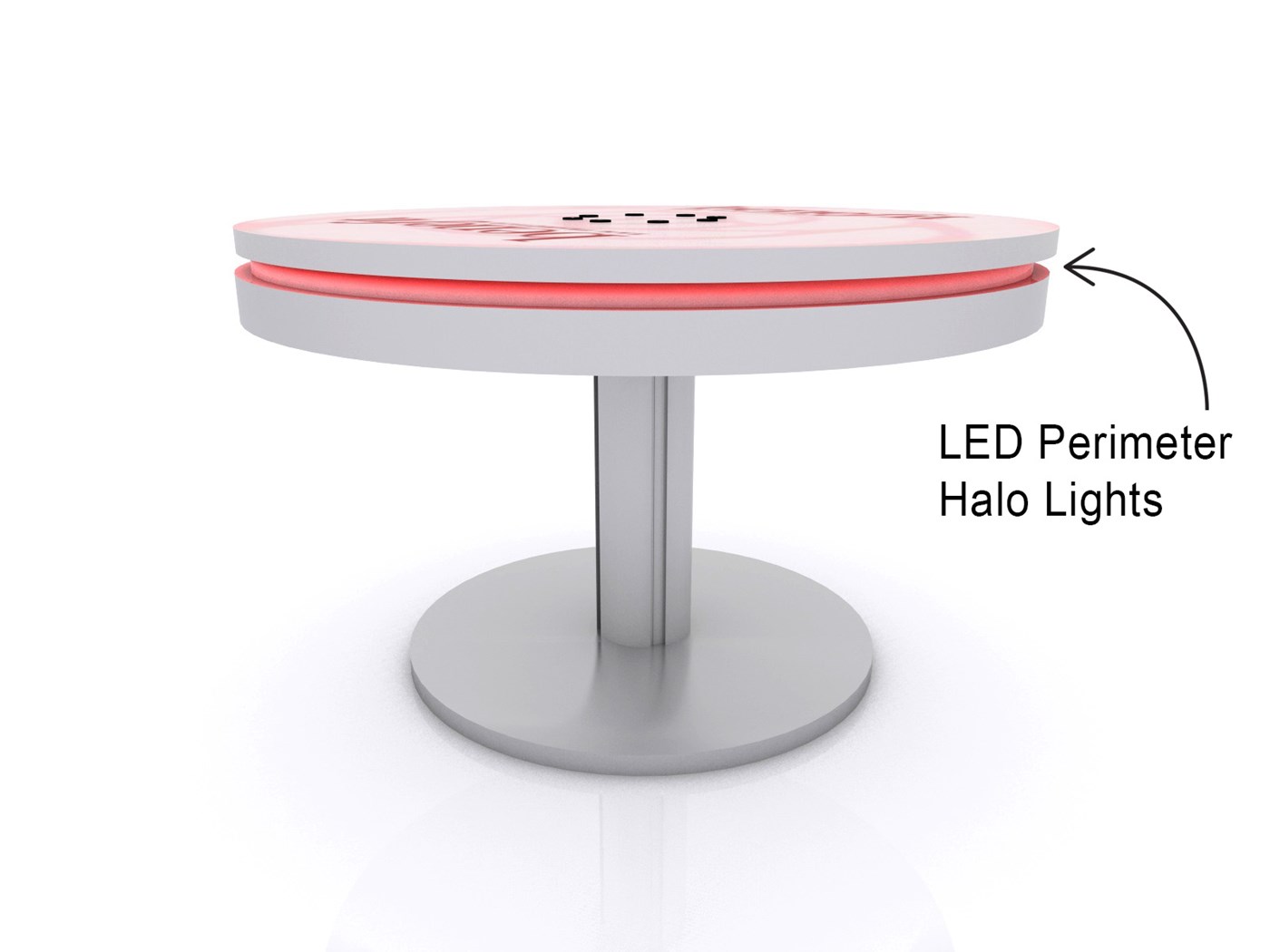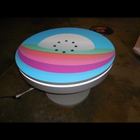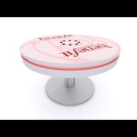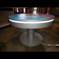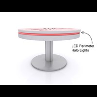 PAC36RCCT 36" Round Charging Coffee Table $1,950 - $2,400 Branded Round Coffee Charging Table with USB connectivity, top graphic and LED halo lighting.