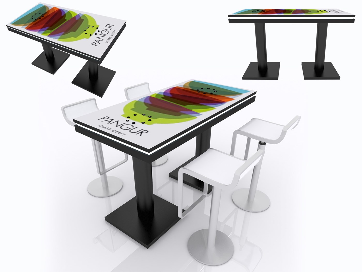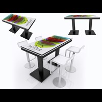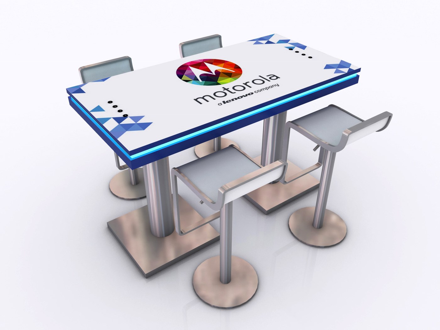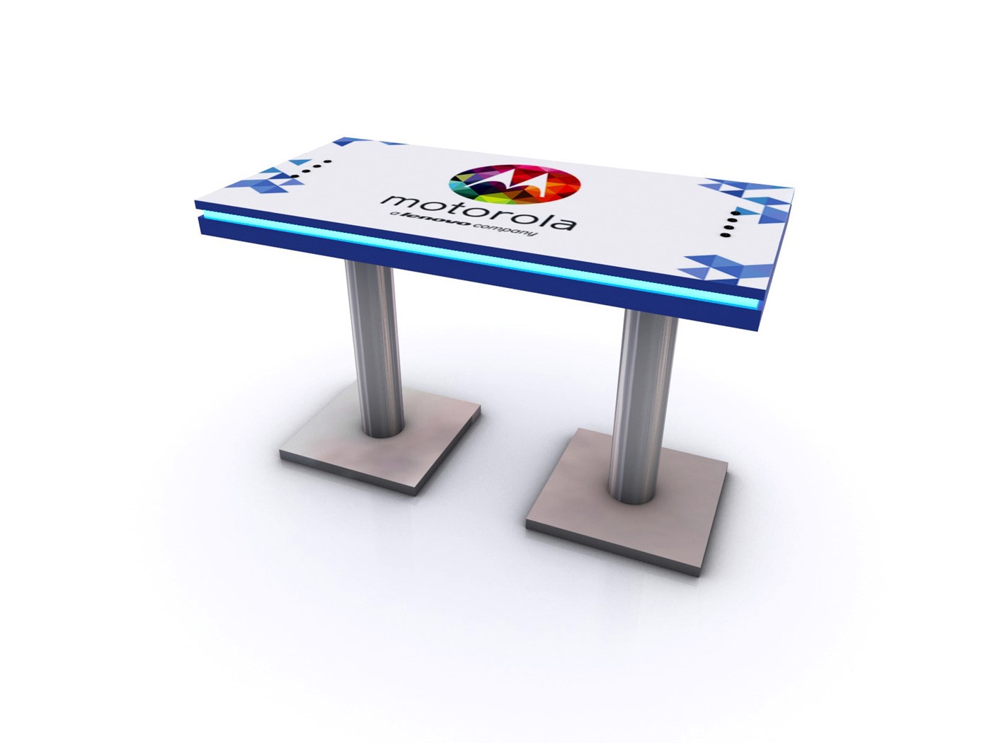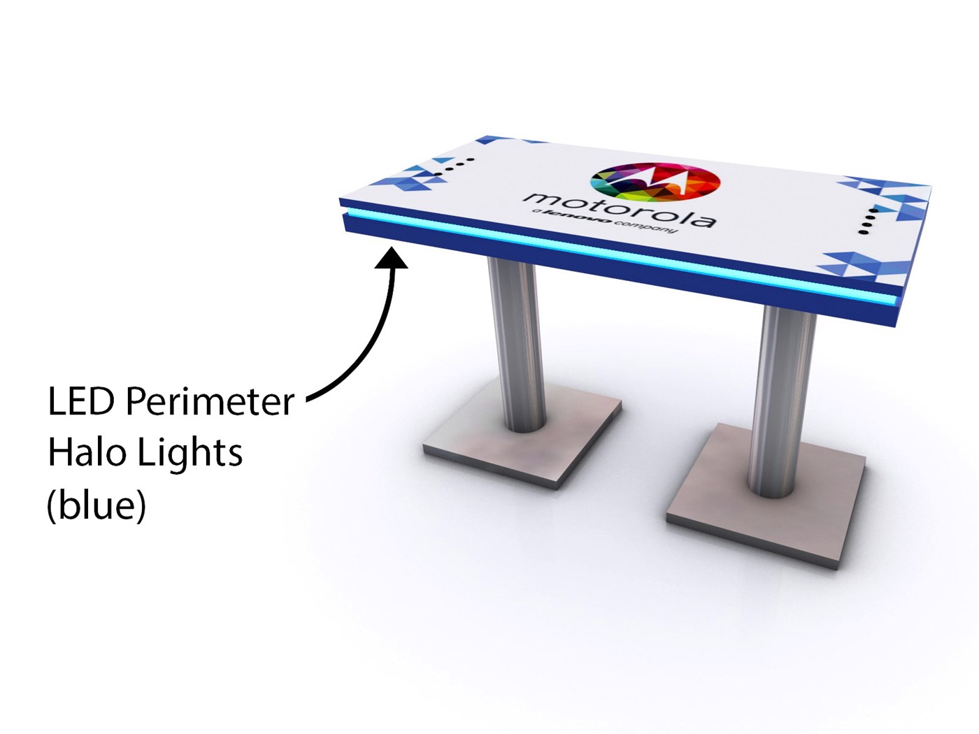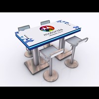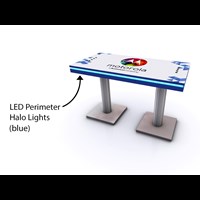 Branded Rectangular Charging Table with USB connectivity, top graphic and LED halo lighting.