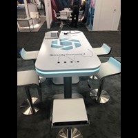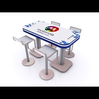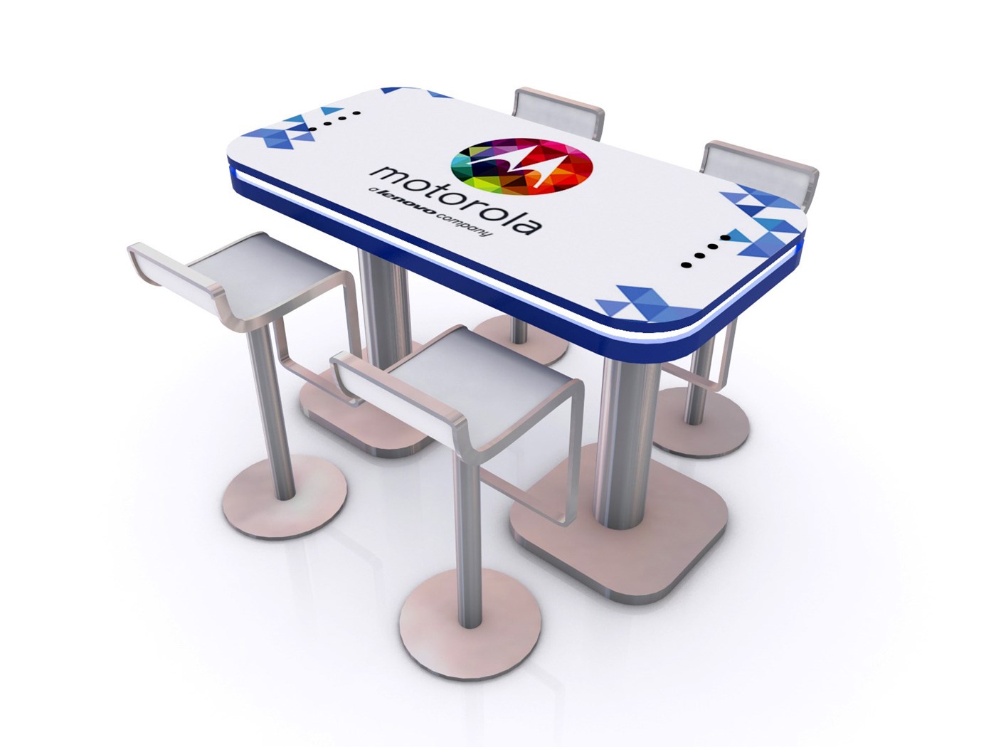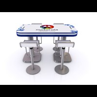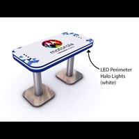 Branded Rectangular Charging Table with USB connectivity, top graphic and LED halo lighting.