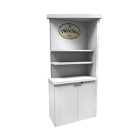 Optional accessories include front and back graphics, (2) 39" x 12" white laminated shelves.