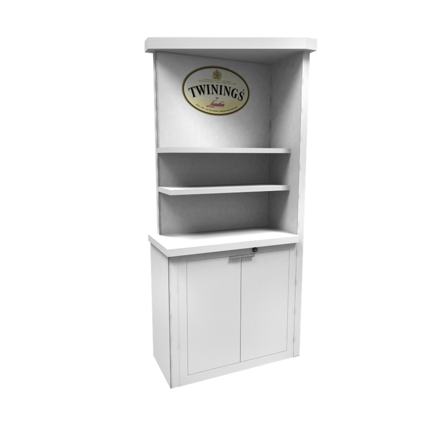 44"W x 24" Key-less locking counter with white laminate top, inside shelf & wire management, white laminate angled ceiling.
