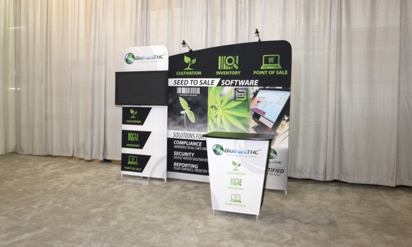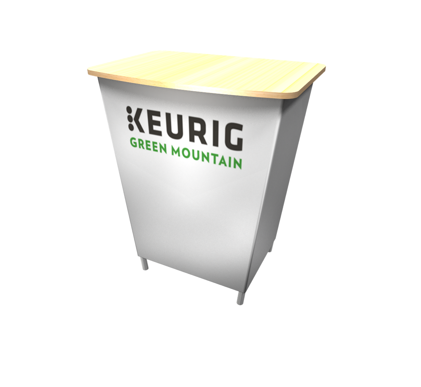 Portable IMPACT tapered fabric counter with branded graphic wrap, storage and tool-less install.