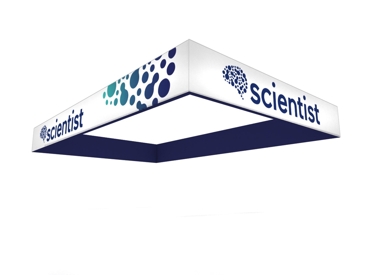 Get noticed from above with a hanging fabric structure, rectangular shape with pillow case tension fabric graphics.