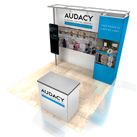 10' x 10' Rental inline display designed with pre-assembled FOUNDATION aluminum framing for custom appeal and tool-less installation. Tension fabric graphics printed in-house for excellent taut finish.