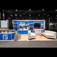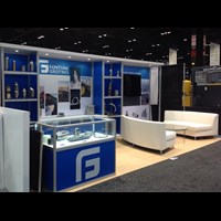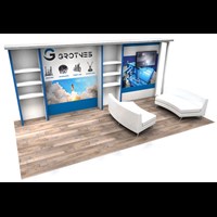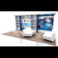 10' x 20' Rental trade show booth fabricated with pre-assembled FOUNDATION aluminum framing for custom appeal and tool-less installation. Large format graphics printed in-house for superior color and taut finish.
