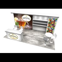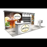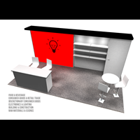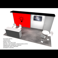 10' x 20' Exhibit trade show rental with pre-assembled aluminum FOUNDATION framing for tool-less installation and custom appearance. Dye-sublimation SEG tension fabric graphics printed in-house for excellent taut finish.