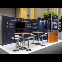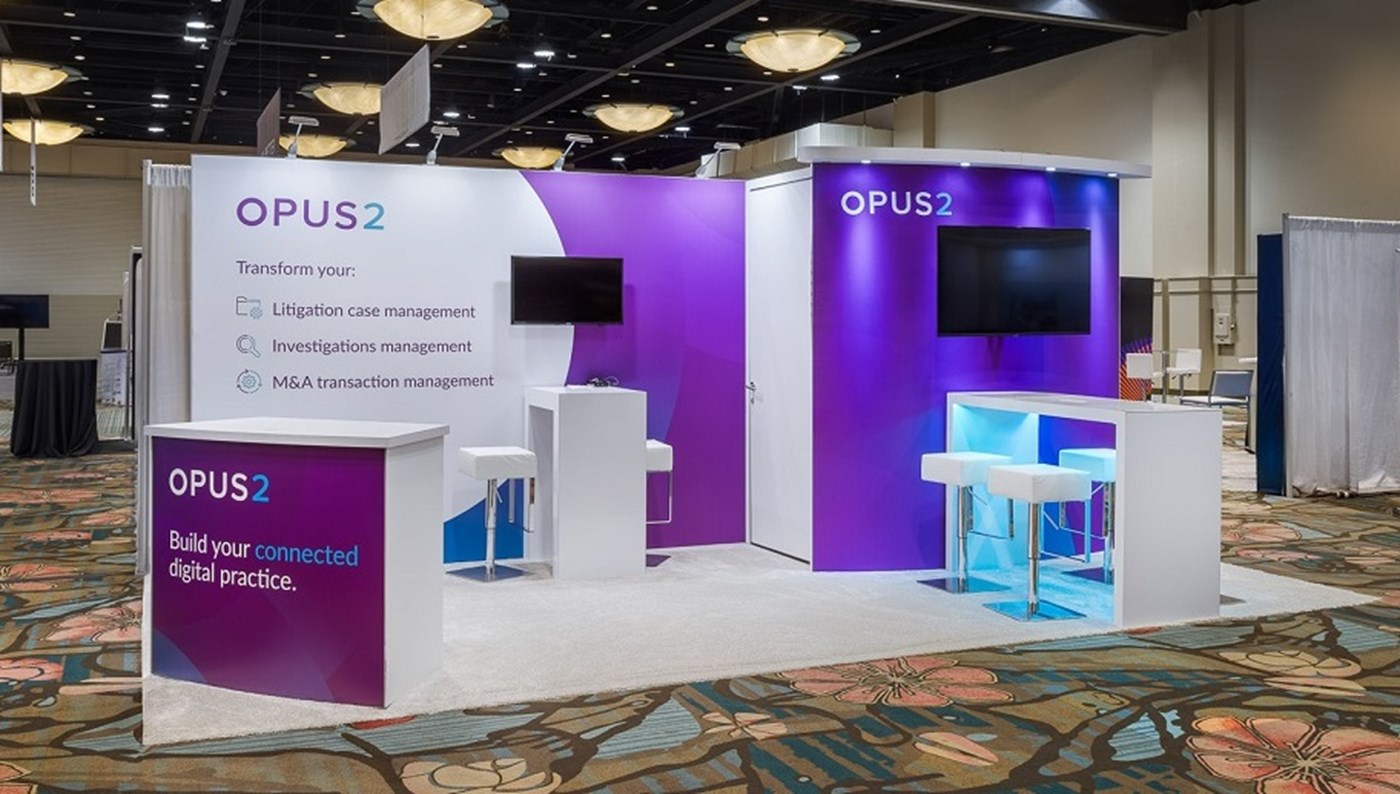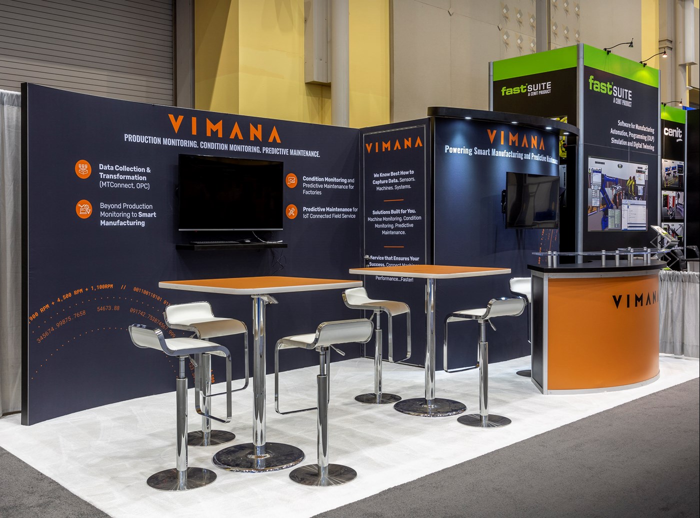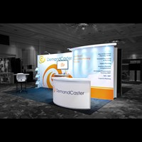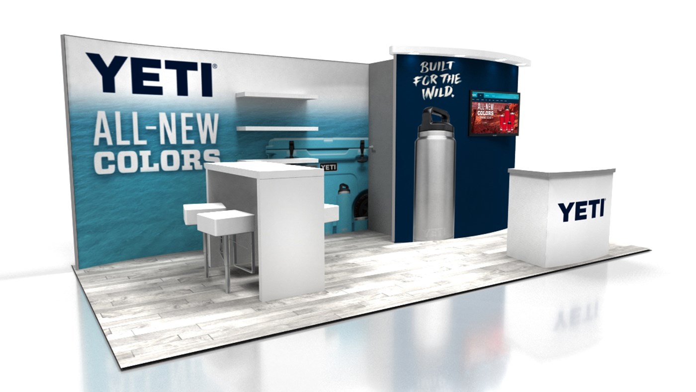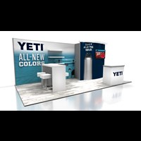 10' x 20' Inline trade show exhibit rental with pre-assembled aluminum FOUNDATION framing for tool-less installation and custom appearance. Dye-sublimation SEG tension fabric graphics printed in-house for superior edge-to-edge look and taut appearance.