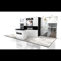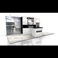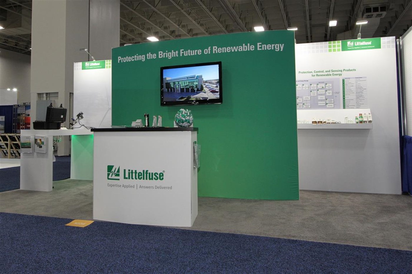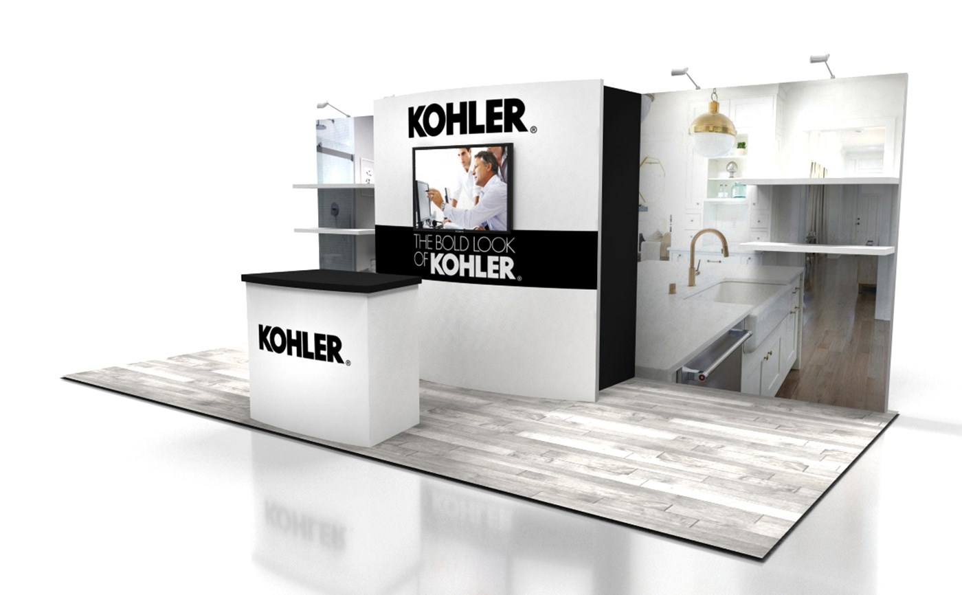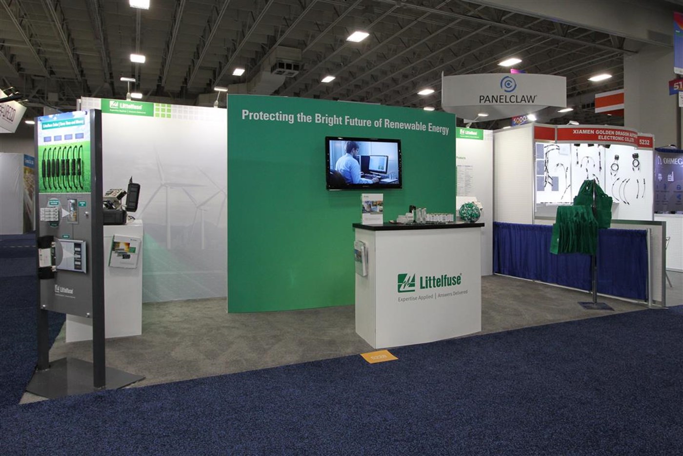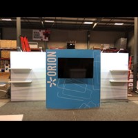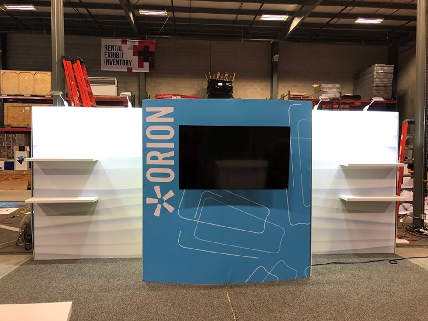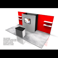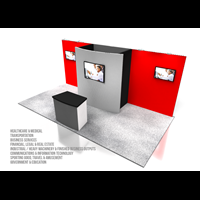 10' x 20' Rental trade show exhibit fabricated with pre-assembled aluminum FOUNDATION frames for tool-less installation and custom appeal. Large format graphics printed in-house for superior edge-to-edge look and taut appearance.