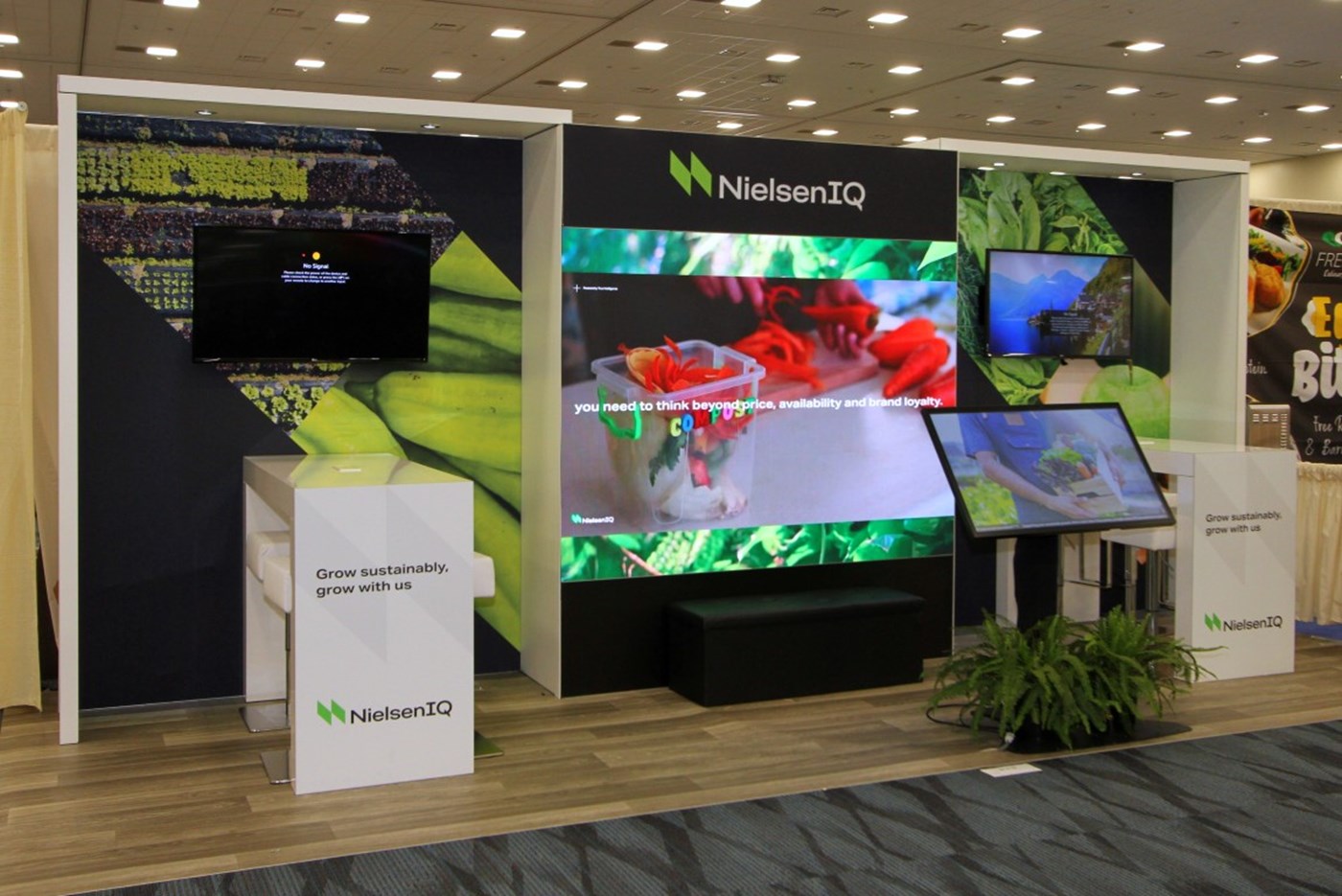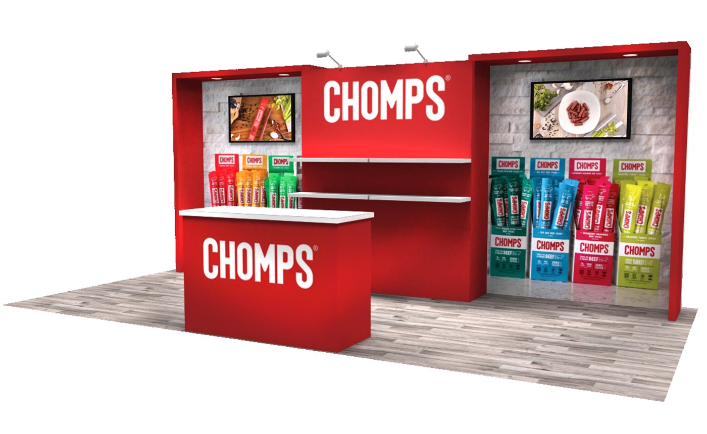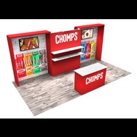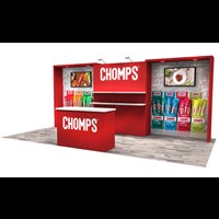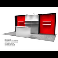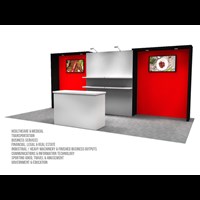 10' x 20' Trade show rental designed with pre-assembled aluminum FOUNDATION framing for tool-less installation and custom appearance. Dye-sublimation SEG tension fabric graphics printed in-house for superior edge-to-edge look and taut finish.