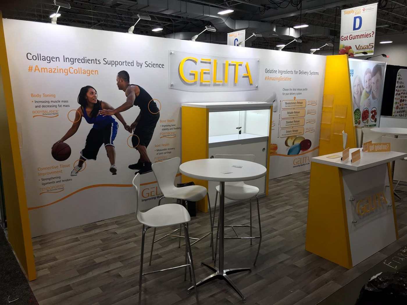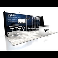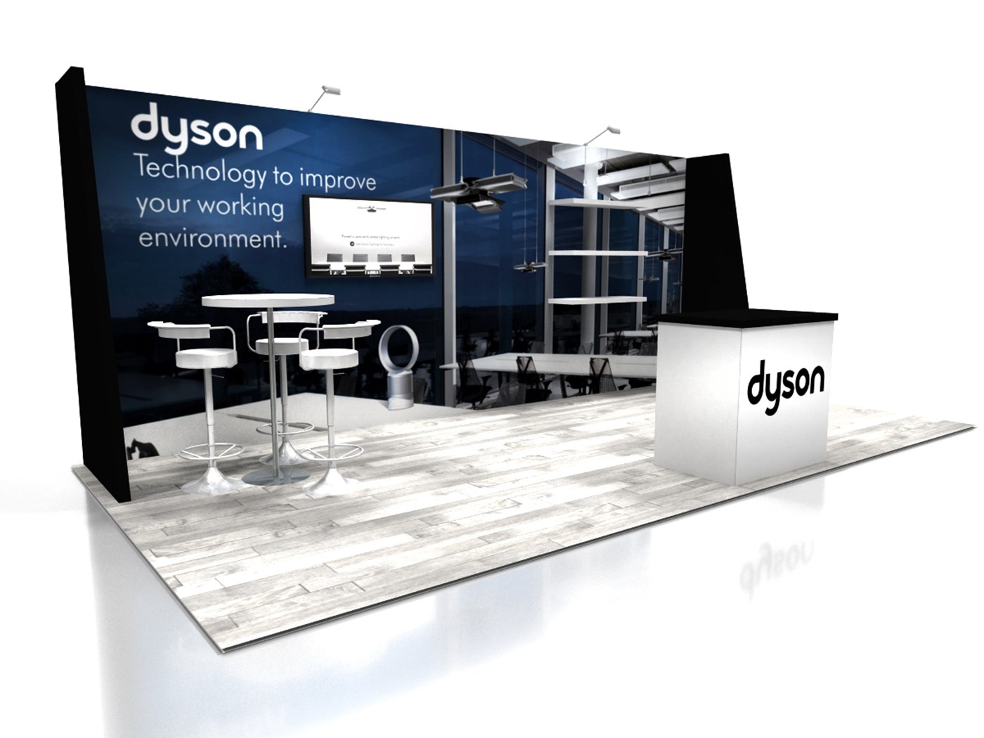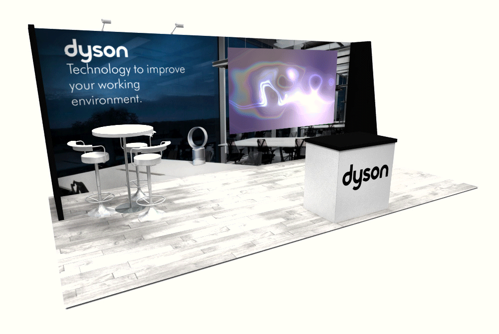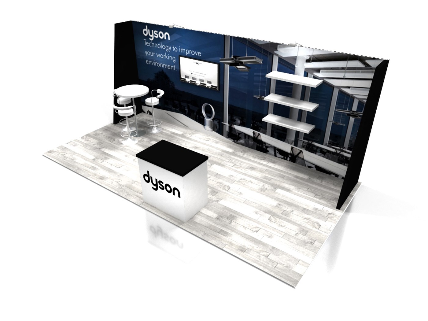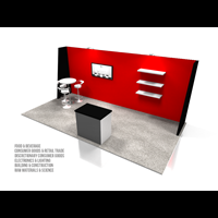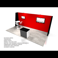 10' x 20' Inline exhibit rental designed with pre-assembled aluminum FOUNDATION frames for tool-less installation and custom appearance. Large format graphics printed in-house for superior edge-to-edge look and taut finish.