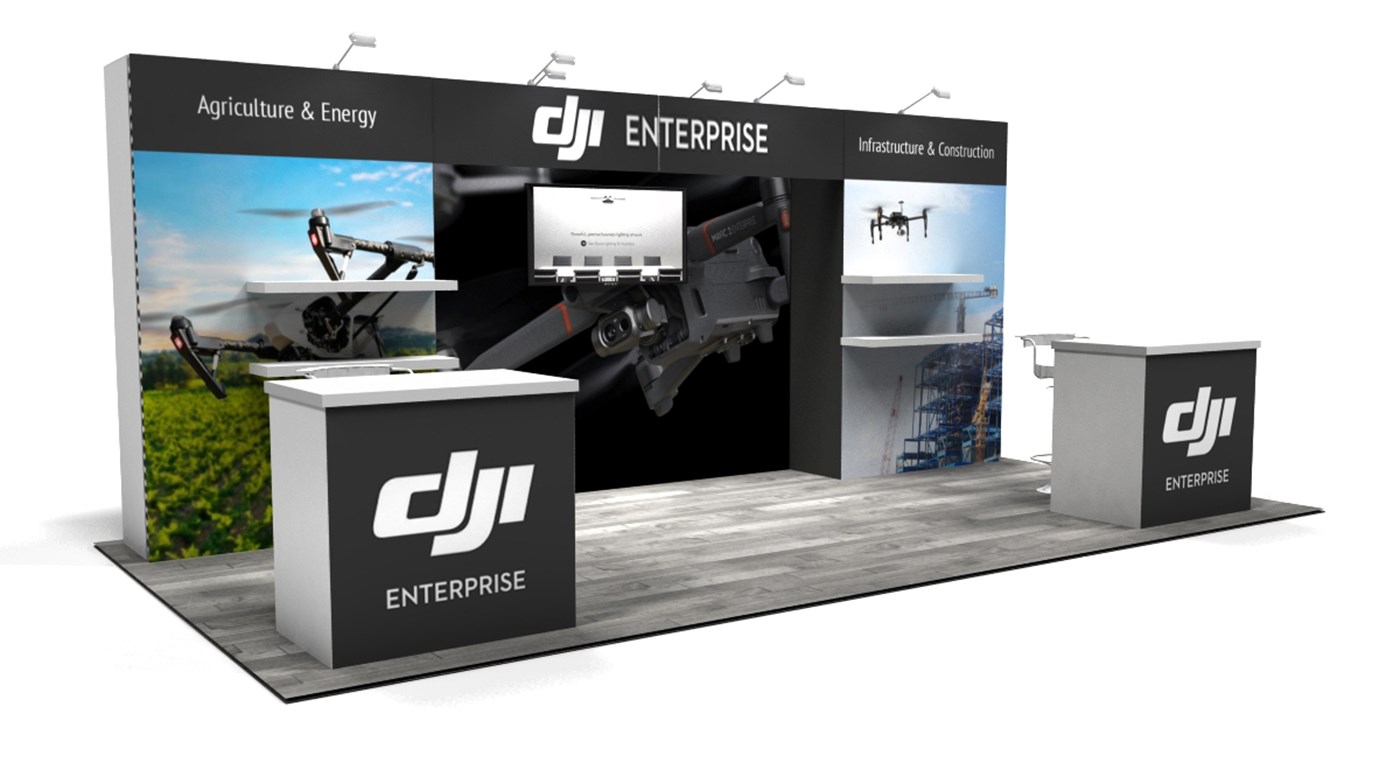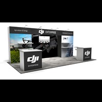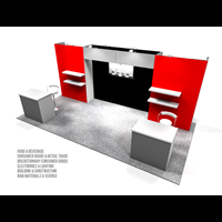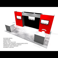 10' x 20' Trade show rental display designed with pre-assembled aluminum FOUNDATION framing for tool-less installation and custom appearance. Large format graphics printed in-house for superior edge-to-edge look and taut finish.