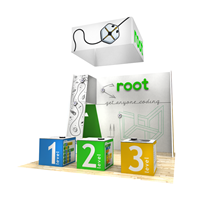 Optional rental items include (3) 36" x 36" key-less locking counters with 4-sided graphics and 10' x 48" square singed-sided hanging fabric structure.