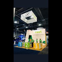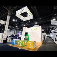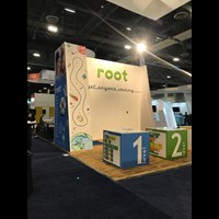 20' x 20' Custom exhibit rental with pre-assembled FOUNDATION aluminum framing for custom appeal and tool-less installation. Large format graphics printed in-house for superior color saturation and taut edge-to-edge finish.