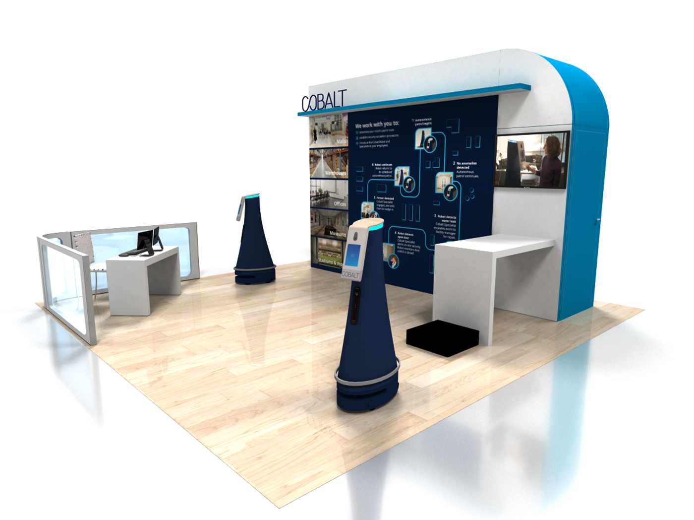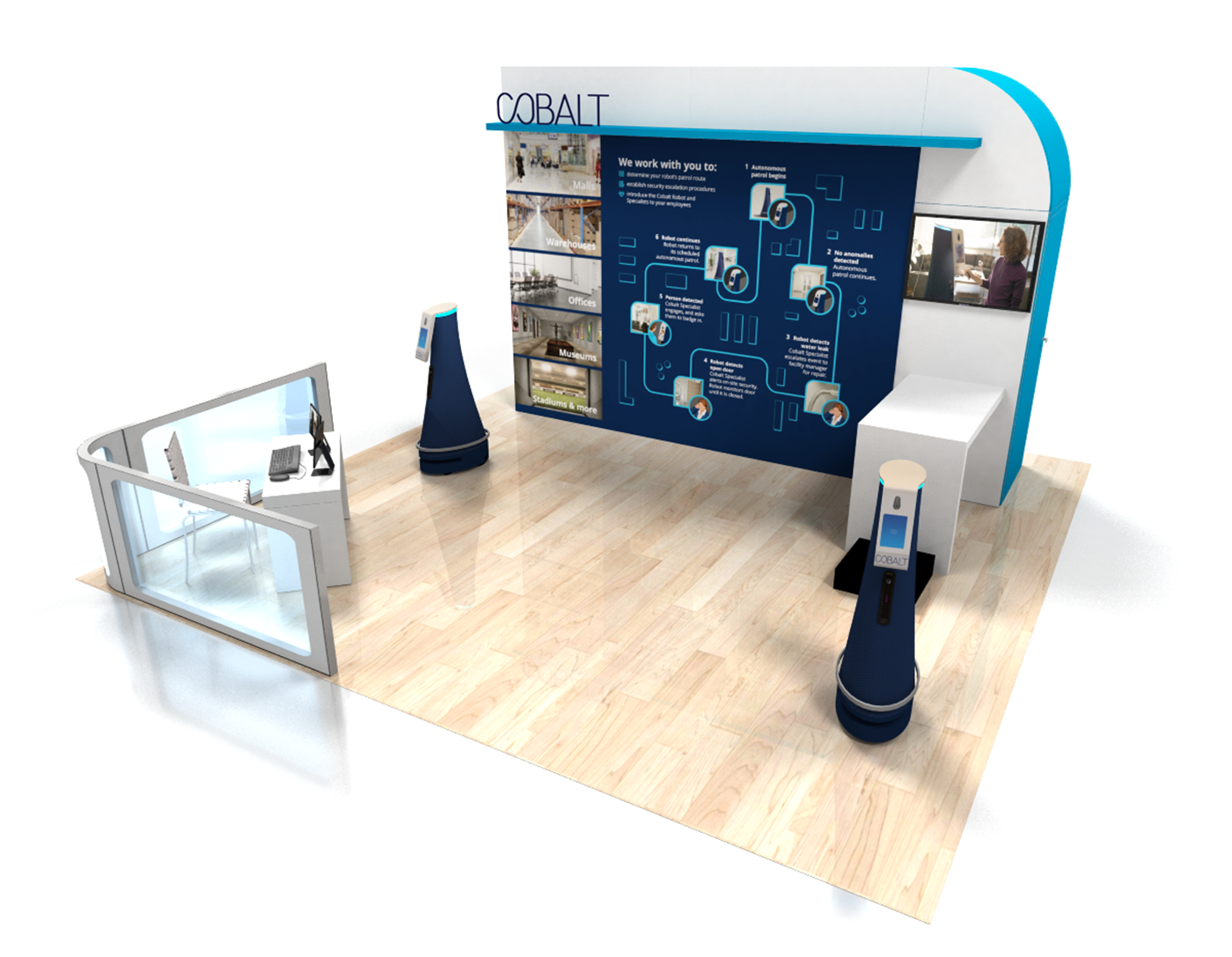Optional items include corner half-wall with acrylic graphics, dimensional logo's and integrated literature holders.