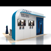 20' x 20' Rental trade show exhibit fabricated with pre-assembled aluminum FOUNDATION framing for tool-less installation and custom appeal. Large format graphics printed in-house for excellent edge-to-edge taut finish.