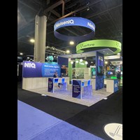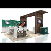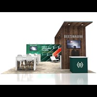 20' x 20' Trade show rental exhibit designed with pre-assembled FOUNDATION aluminum framing for time saving installation and custom appeal. Dye-sublimation large format graphics printed in-house for excellent edge-to-edge taut fit.