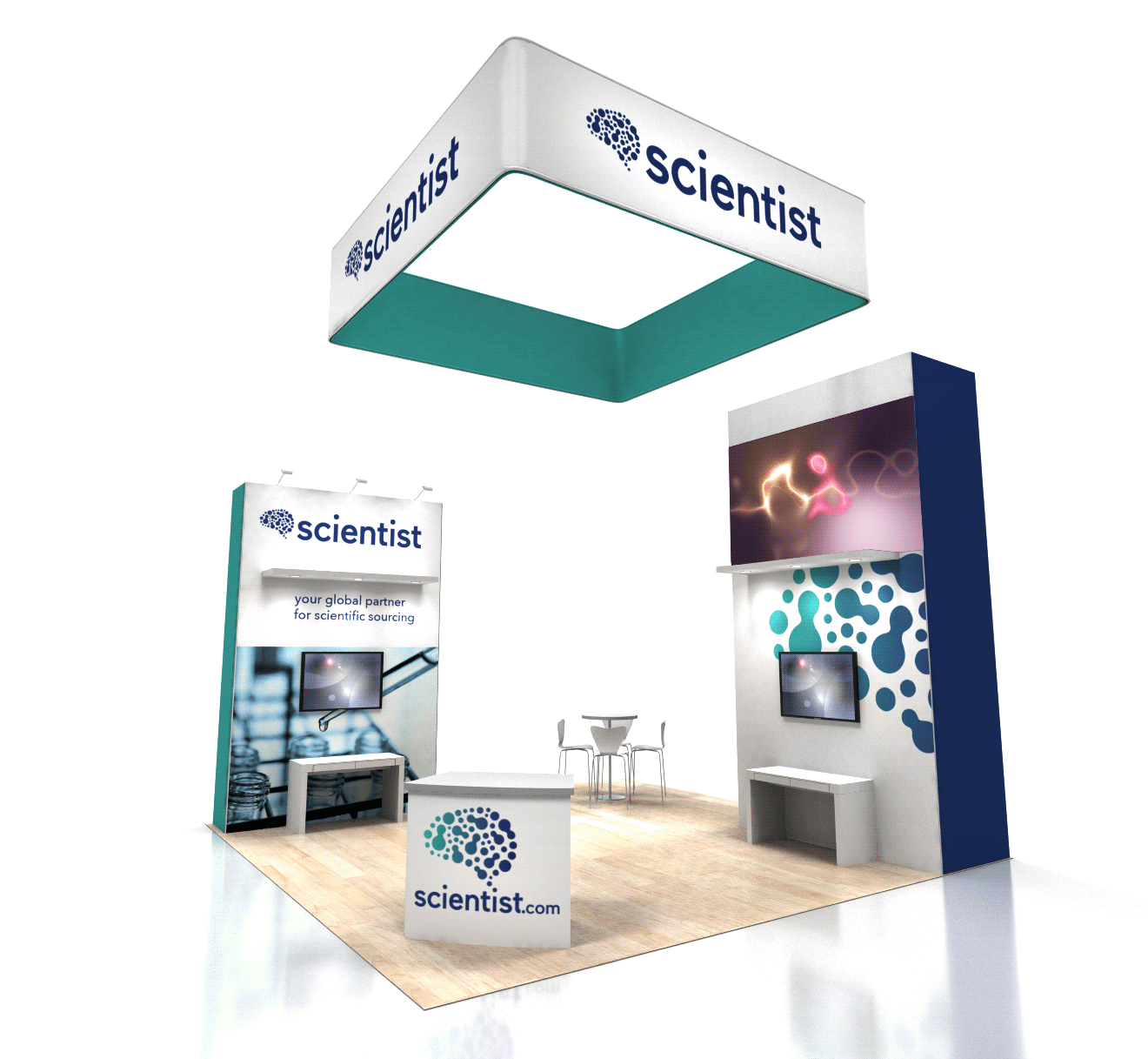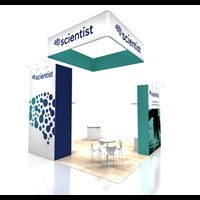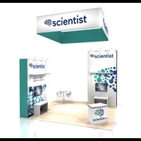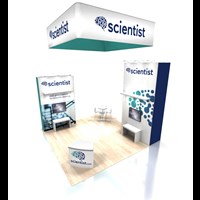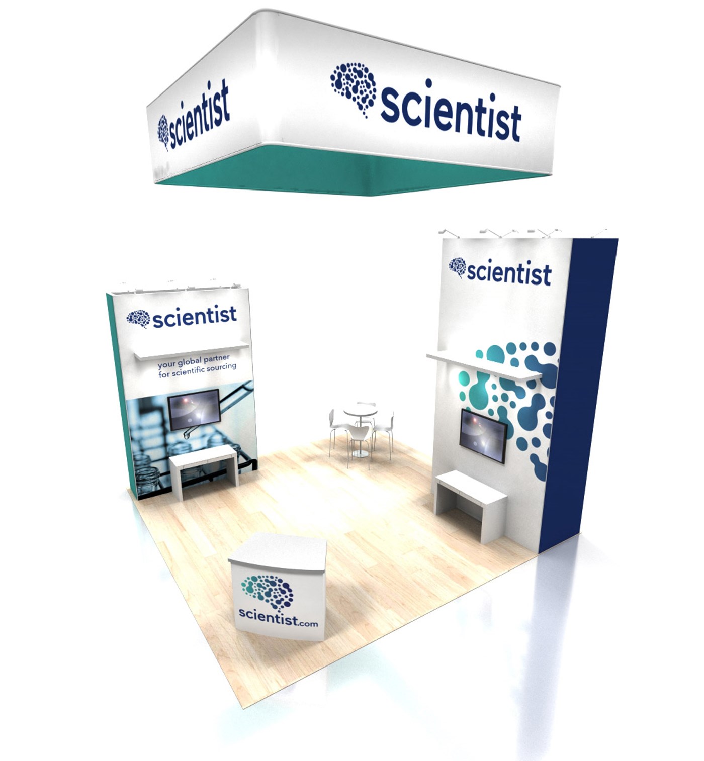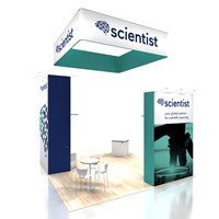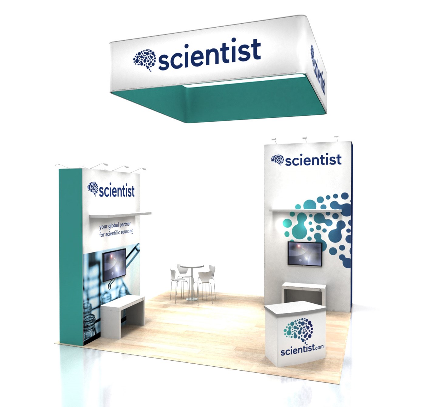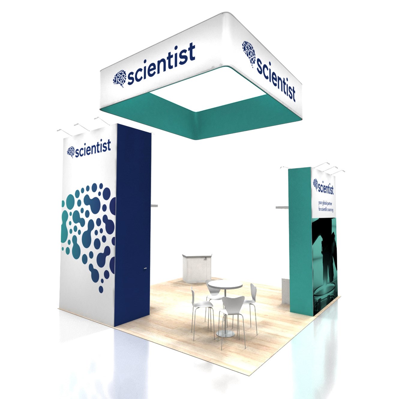 20' x 20' Trade show rental display designed with pre-assembled FOUNDATION aluminum frames for a custom look and tool-less installation. Dye-sublimation SEG tension fabric graphics printed in-house for excellent edge-to-edge taut appearance.