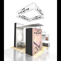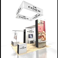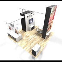 20' x 20' Trade show rental designed with pre-fabricated FOUNDATION aluminum frames for tool-less assembly and custom look. Dye-sublimation SEG tension fabric graphics printed in-house for excellent edge-to-edge taut appearance.