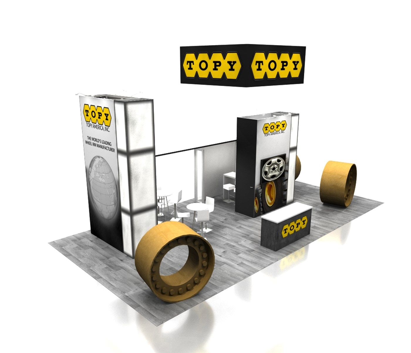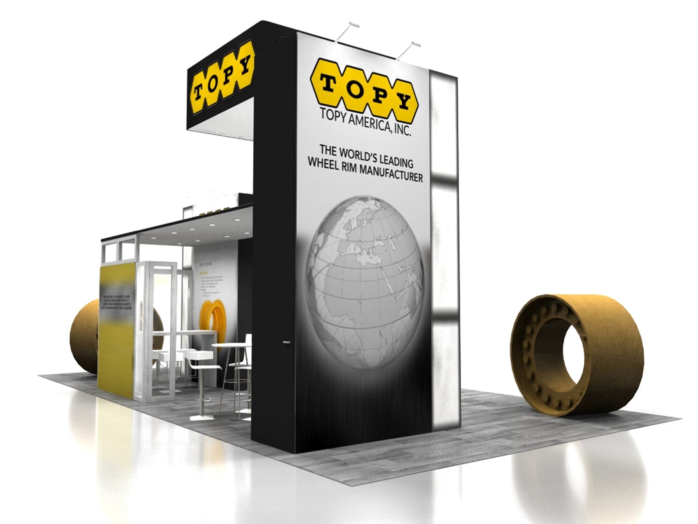 20' x 40' Rental exhibit fabricated with pre-assembled aluminum FOUNDATION framing for custom appeal and tool-less installation. Large format graphics printed in-house for superior color matching and fit-n-finish.