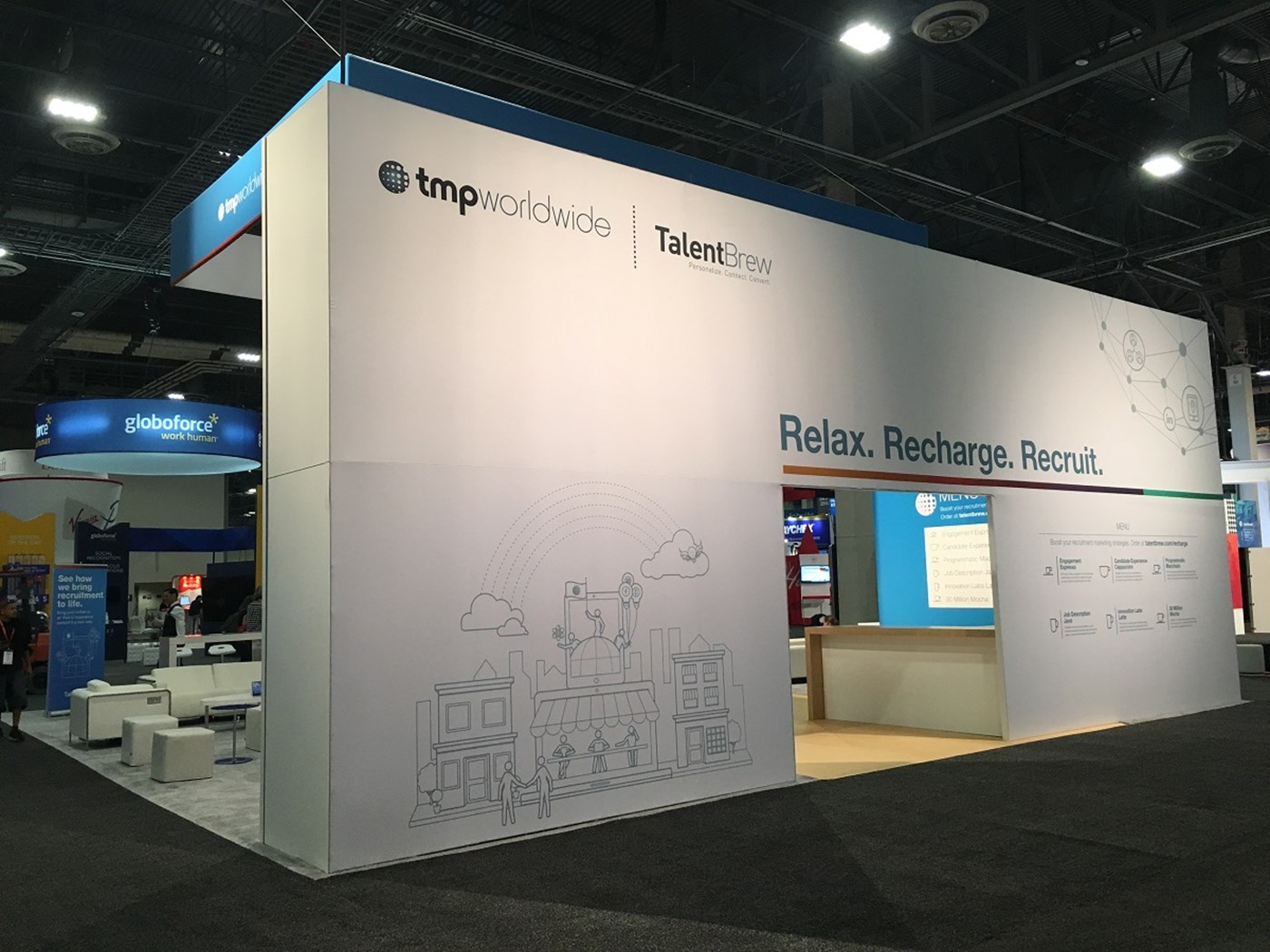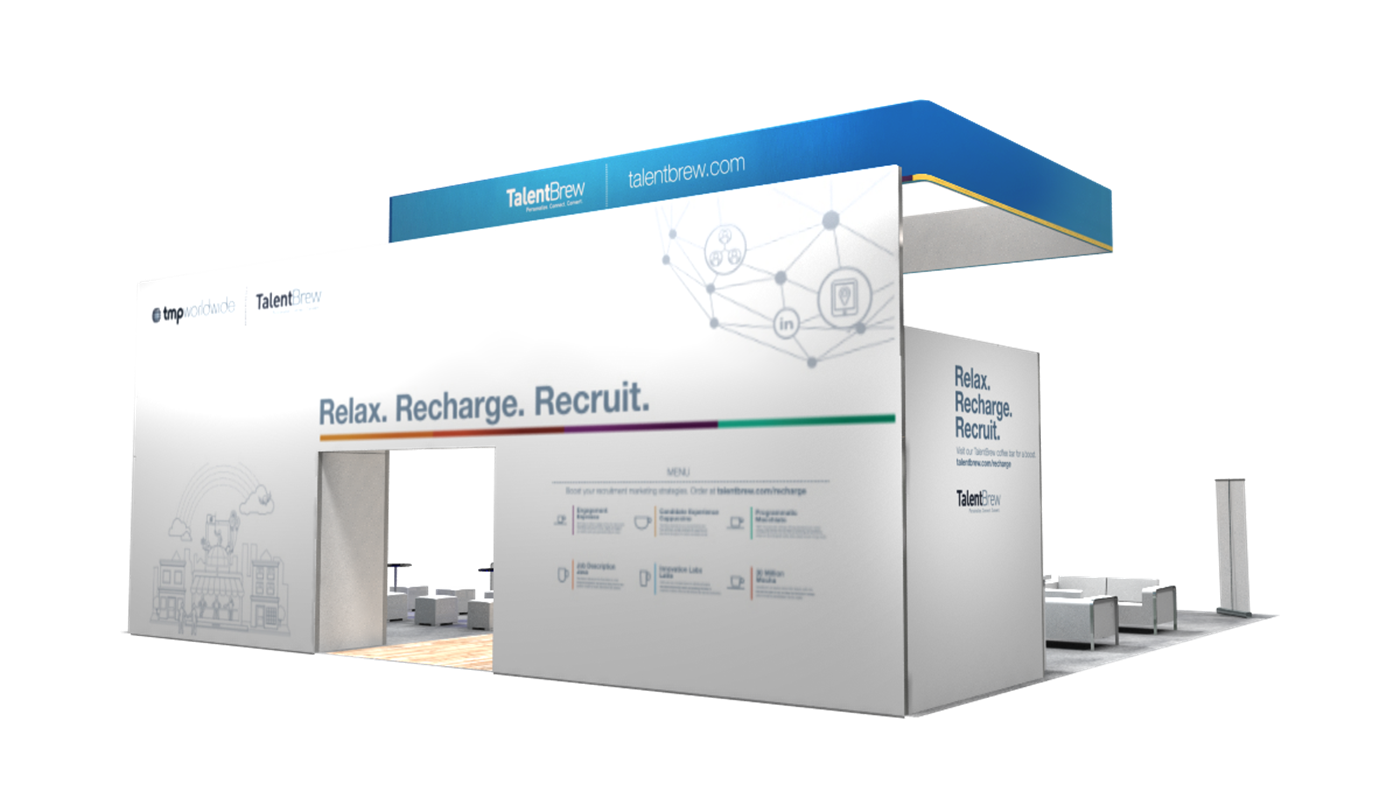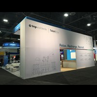 40' x 40' Rental Exhibit with Walk-Through Wall and Lounge Seating