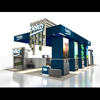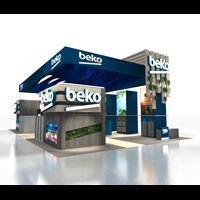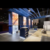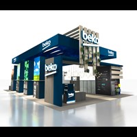 Options include (4) double-sided LED video towers & (3) walls and backlit dimensions logos.