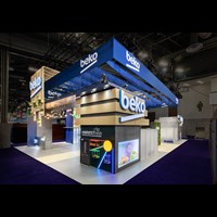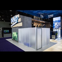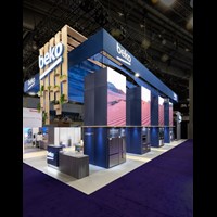50' x 80' Custom exhibit rental designed and fabricated with pre-assembled FOUNDATION framing for tool-less assemble and custom appeal. Large format graphics and laminated panels fabricated in-house for superior color saturations and fit--n-finish look.